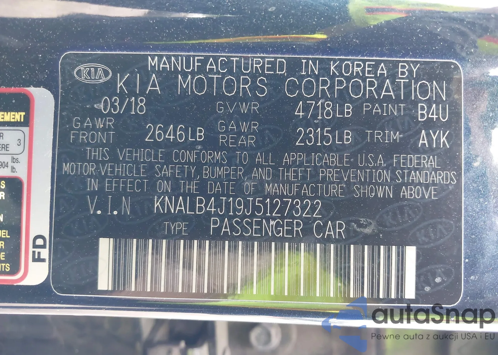 VIN: KNALB4J19J5127322