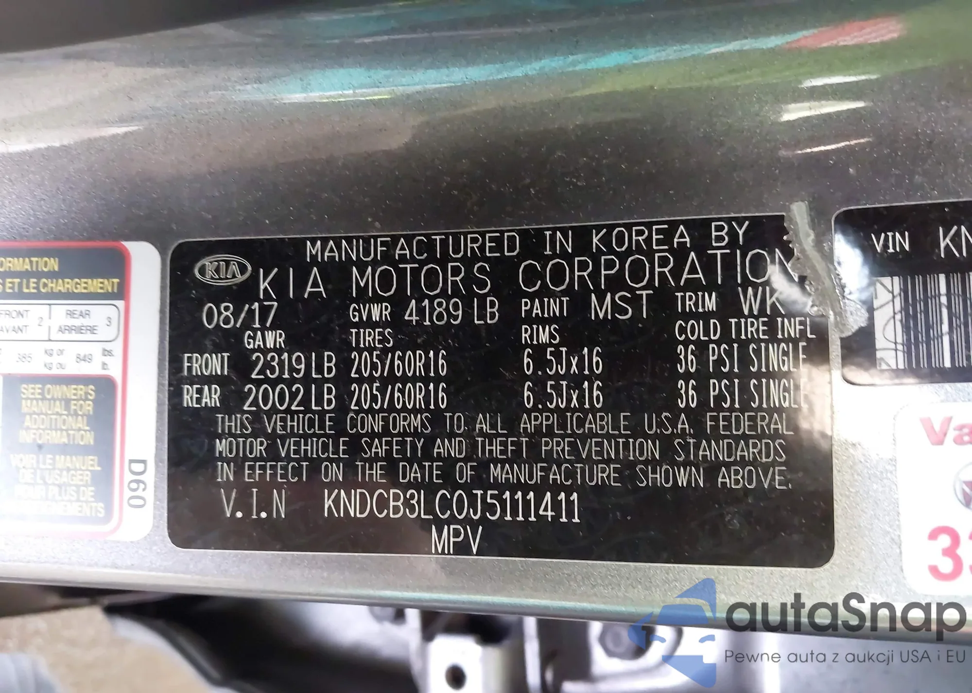 • VIN: KNDCB3LC0J5111411