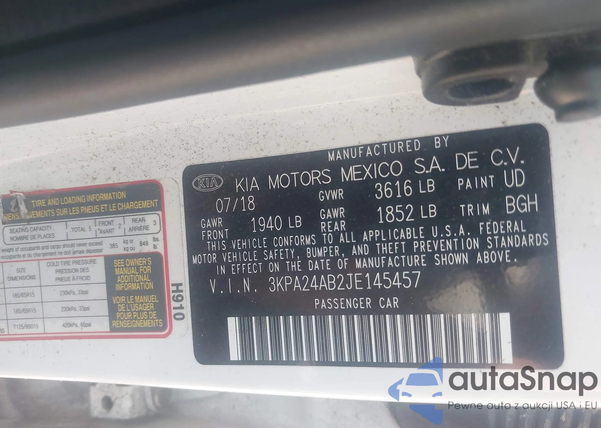 VIN: 3KPA24AB2JE145457