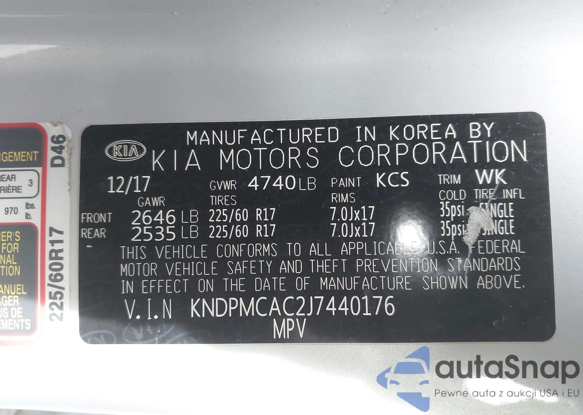 Автомобиль Kia Sportage 2018 (VIN KNDPMCAC2J7440176) ранее не участвовал в торгах. Документы чистые, пробег соответствует или ниже среднего по рынку. Продаётся страховой компанией — рекомендуем покупку. Доставка в порт займет около 6–8 недель.