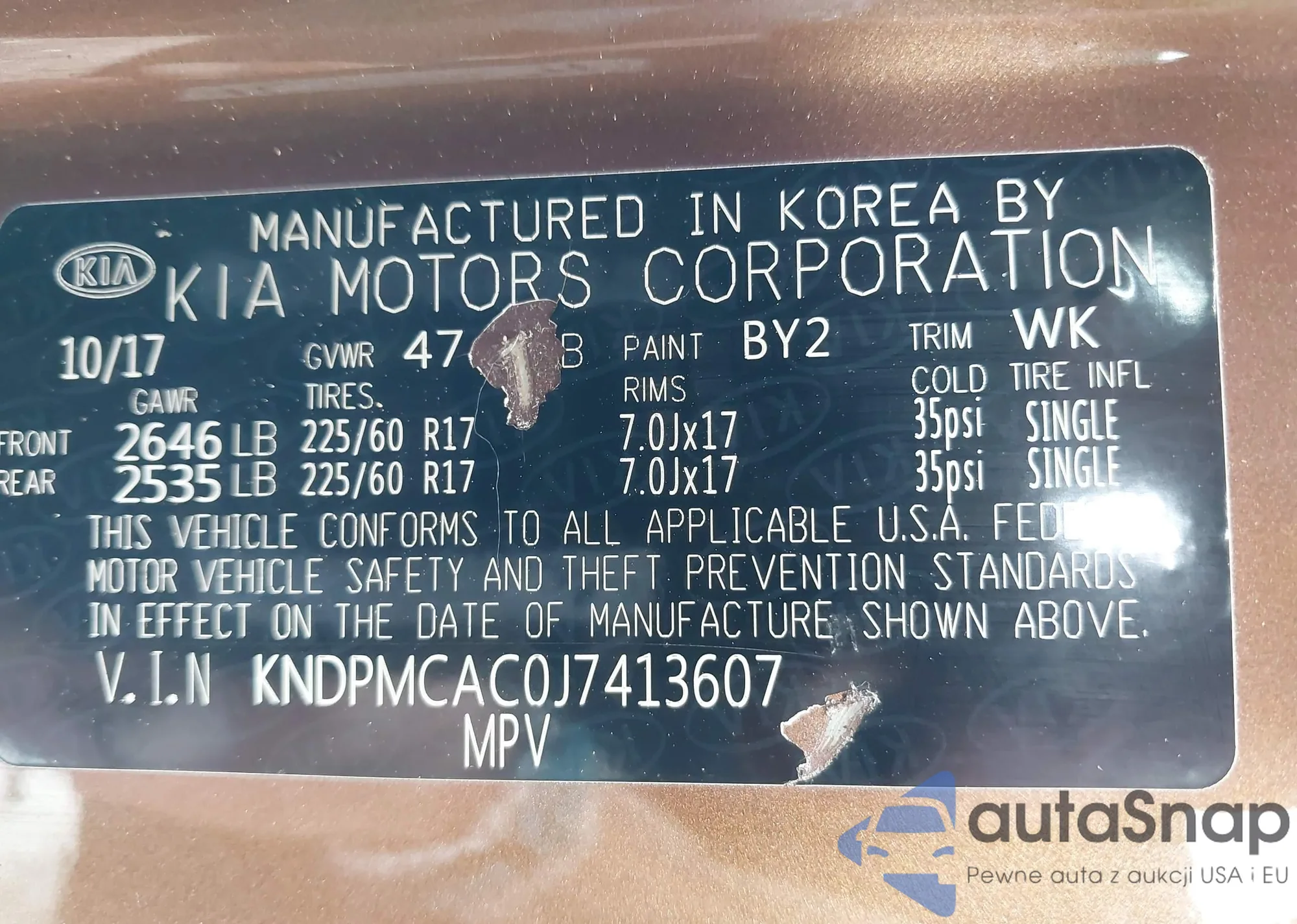 VIN: KNDPMCAC0J7413607