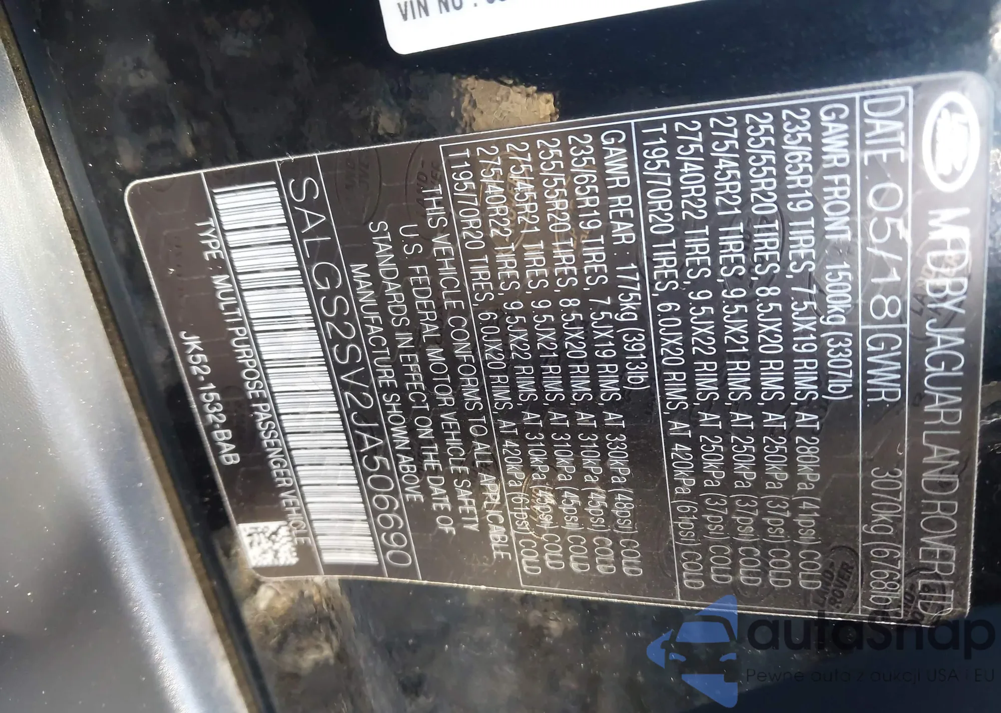 • VIN: SALGS2SV2JA506690