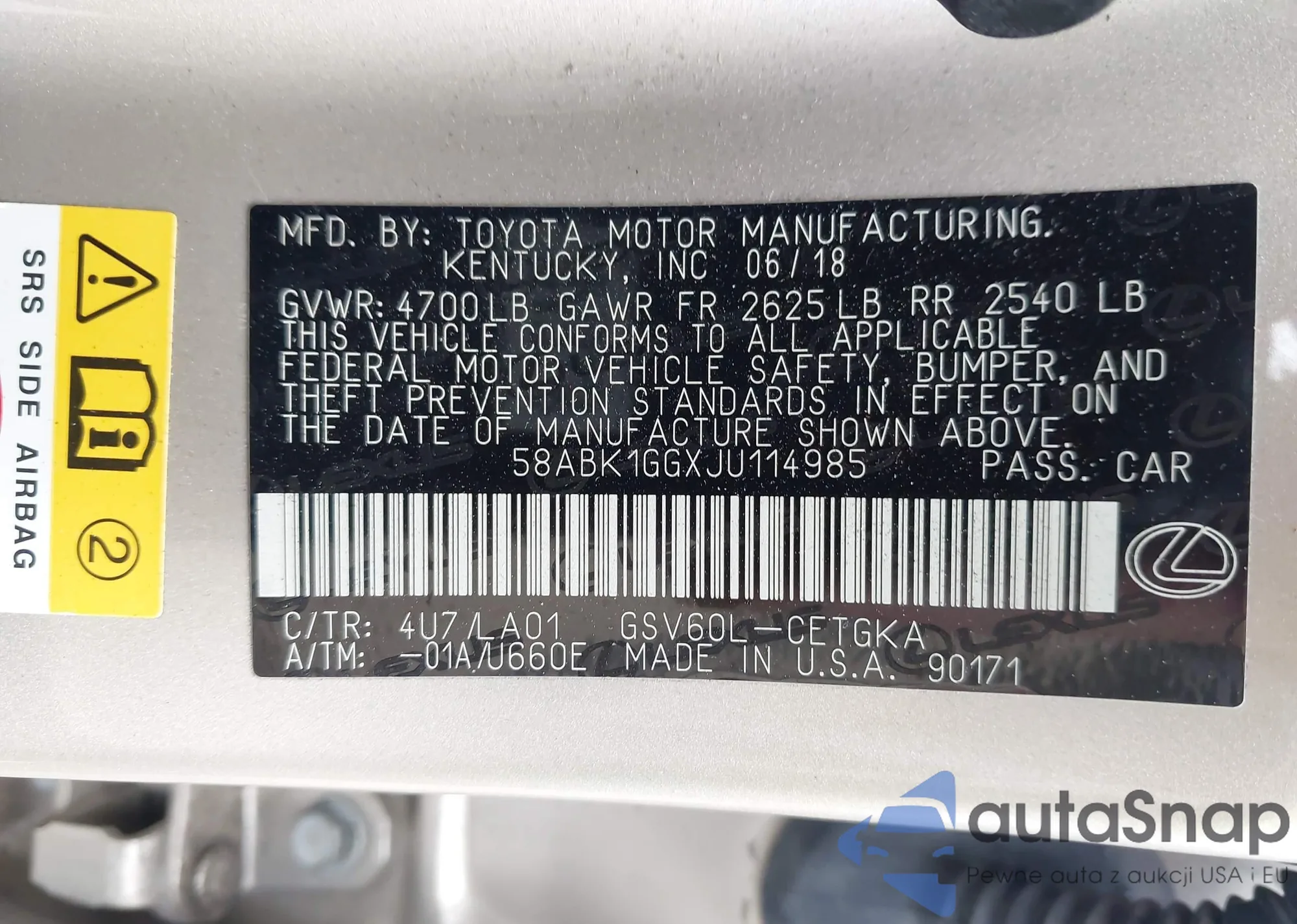 Автомобиль Lexus ES 2018 (VIN 58ABK1GGXJU114985) ранее не участвовал в торгах. Документы чистые, пробег соответствует или ниже среднего по рынку. Продаётся страховой компанией — рекомендуем покупку. Доставка в порт займет около 6–8 недель.