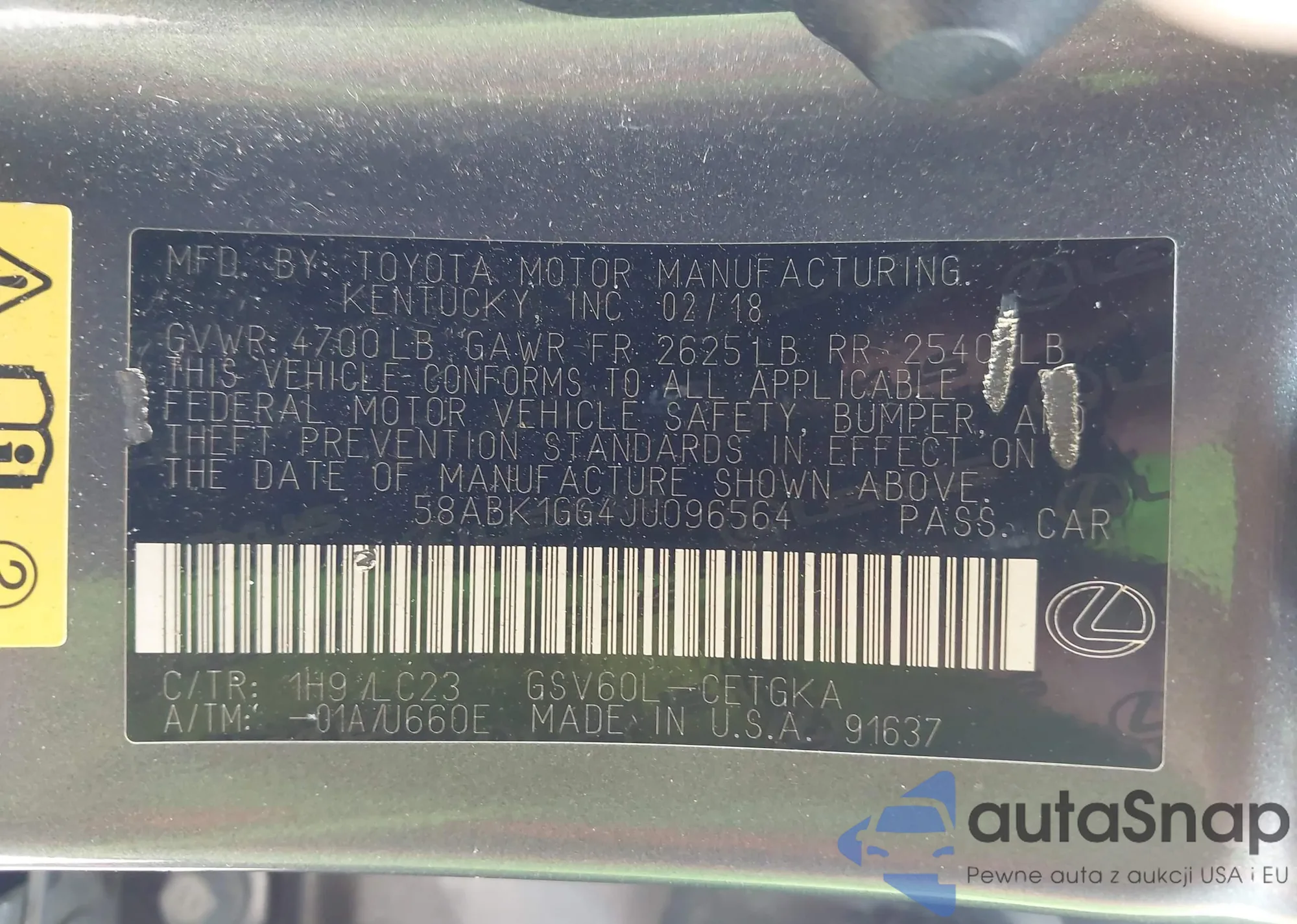 VIN: 58ABK1GG4JU096564
