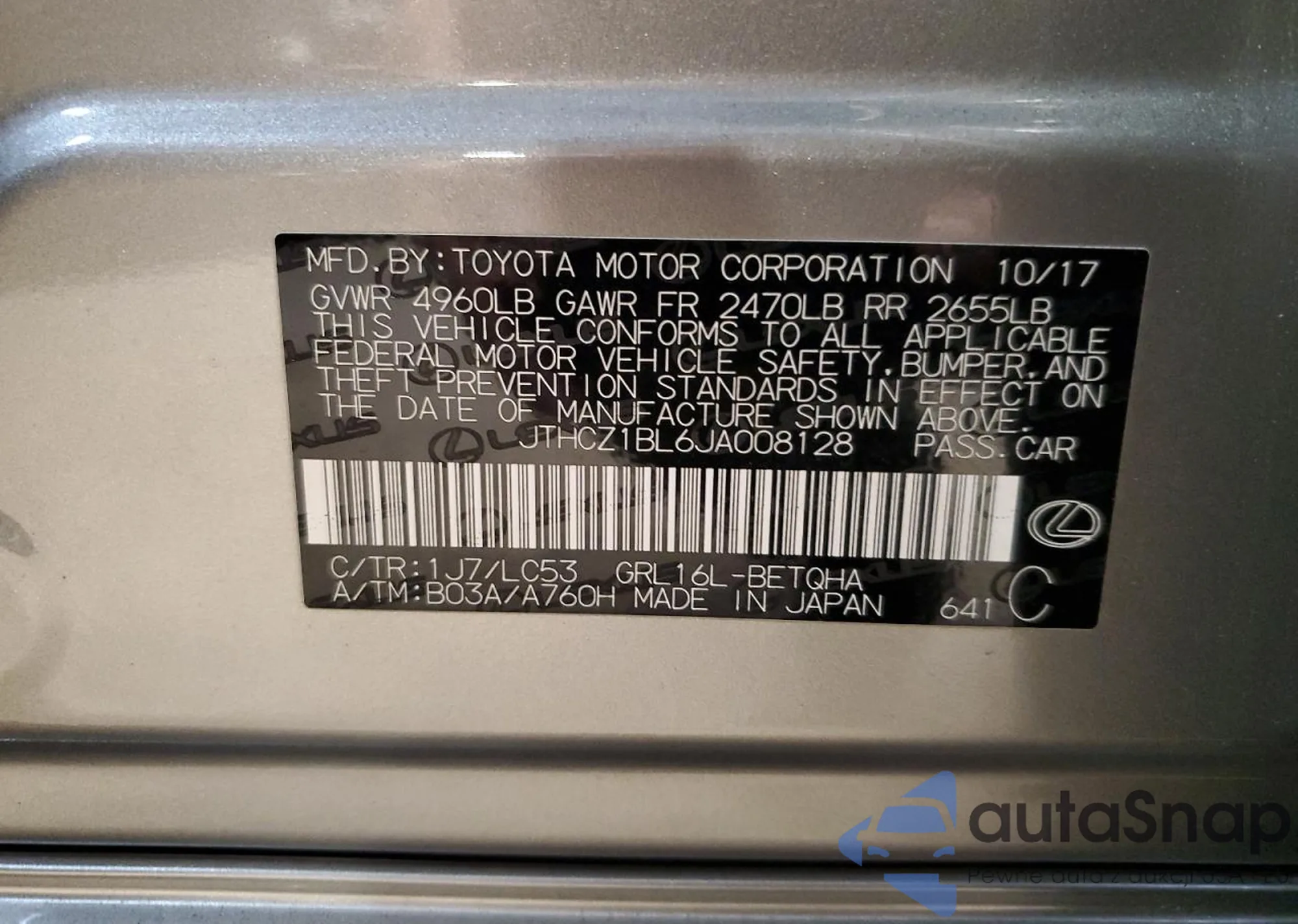 VIN: JTHCZ1BL6JA008128