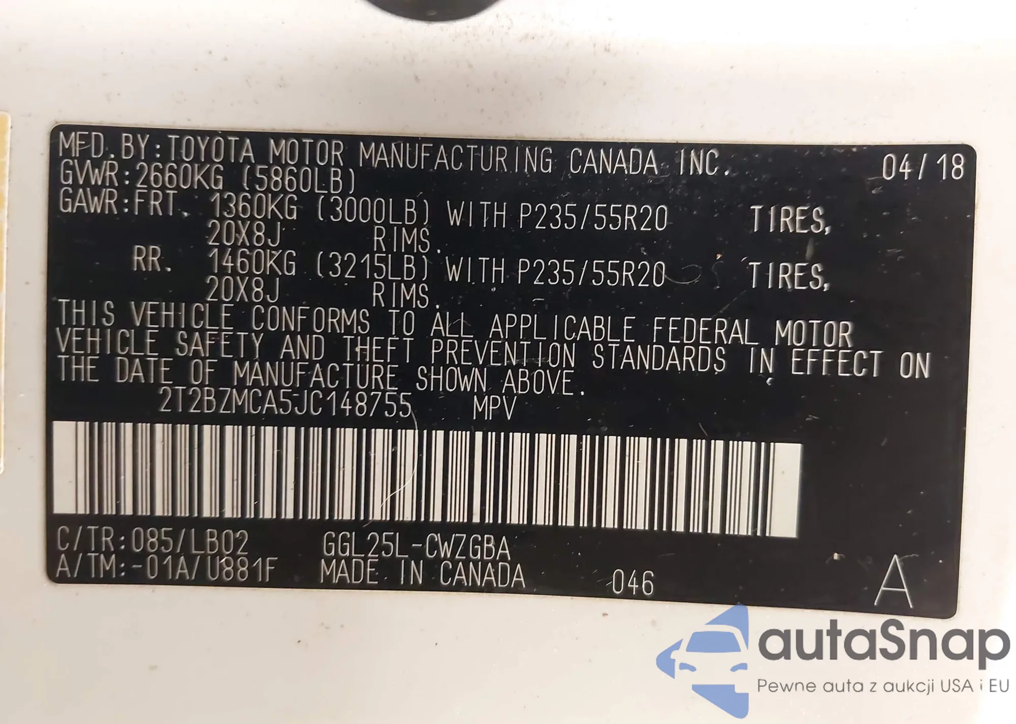 VIN: 2T2BZMCA5JC148755