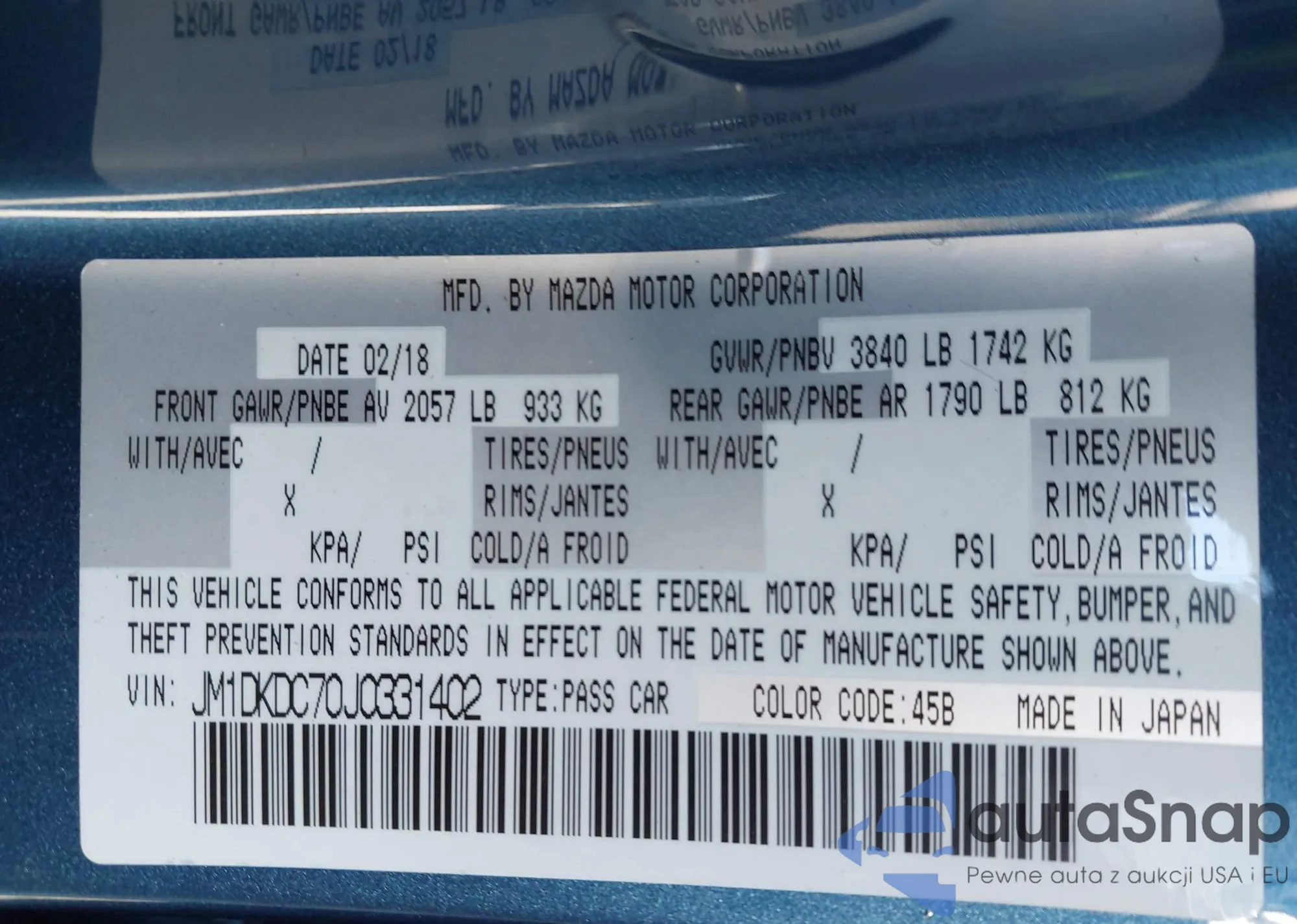 VIN: JM1DKDC70J0331402