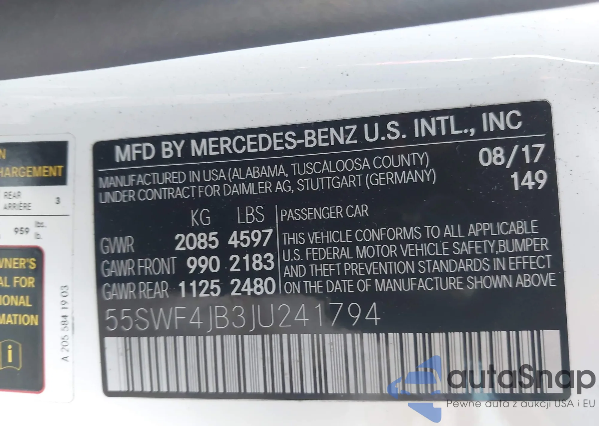 • VIN: 55SWF4JB3JU241794
