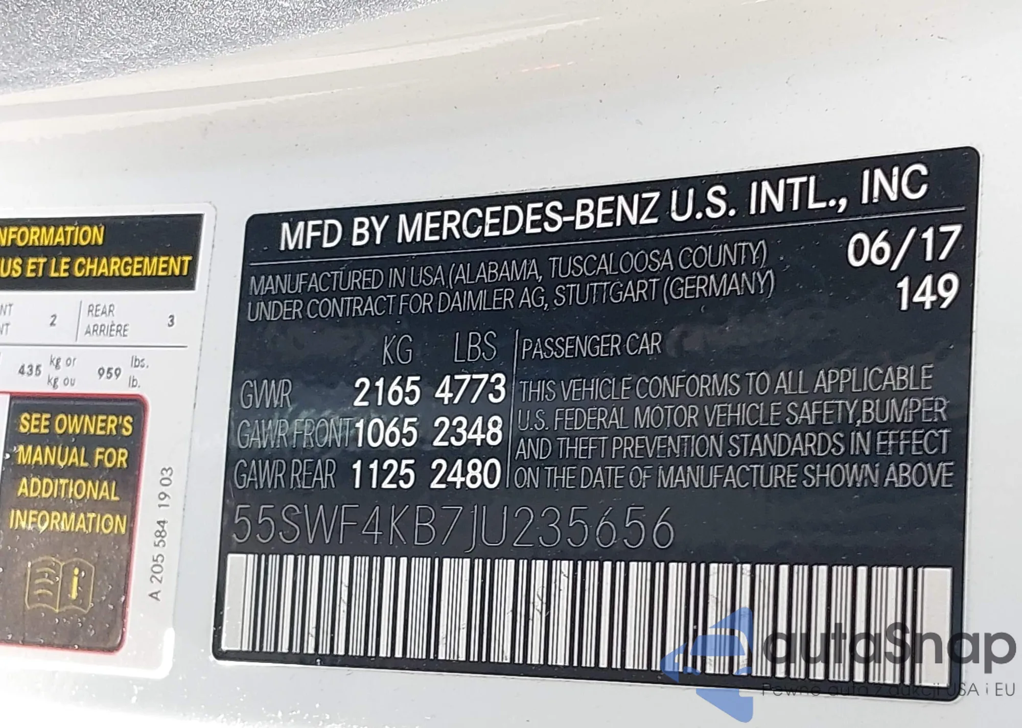 VIN: 55SWF4KB7JU235656