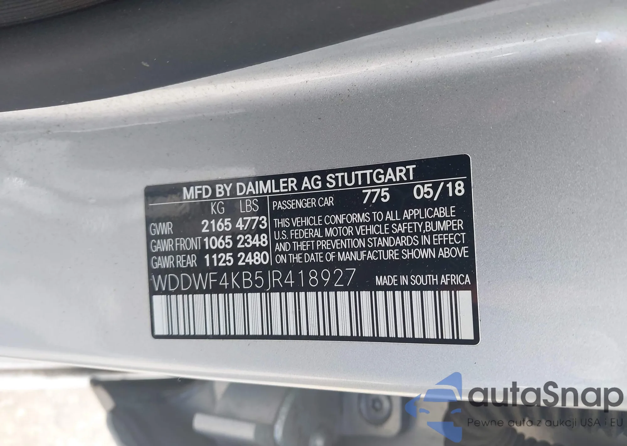 • VIN: WDDWF4KB5JR418927