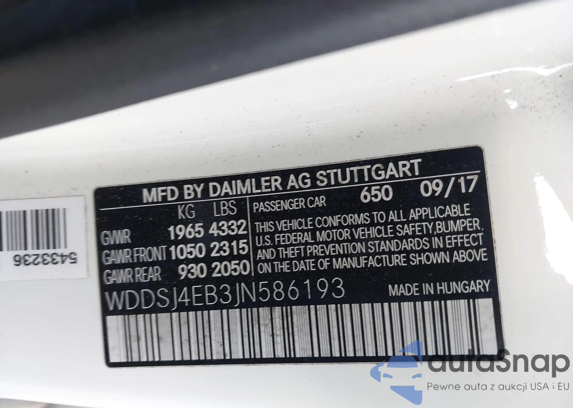 • VIN: WDDSJ4EB3JN586193