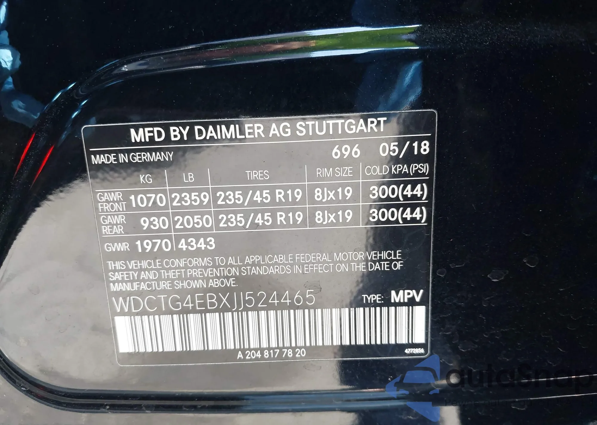 VIN: WDCTG4EBXJJ524465