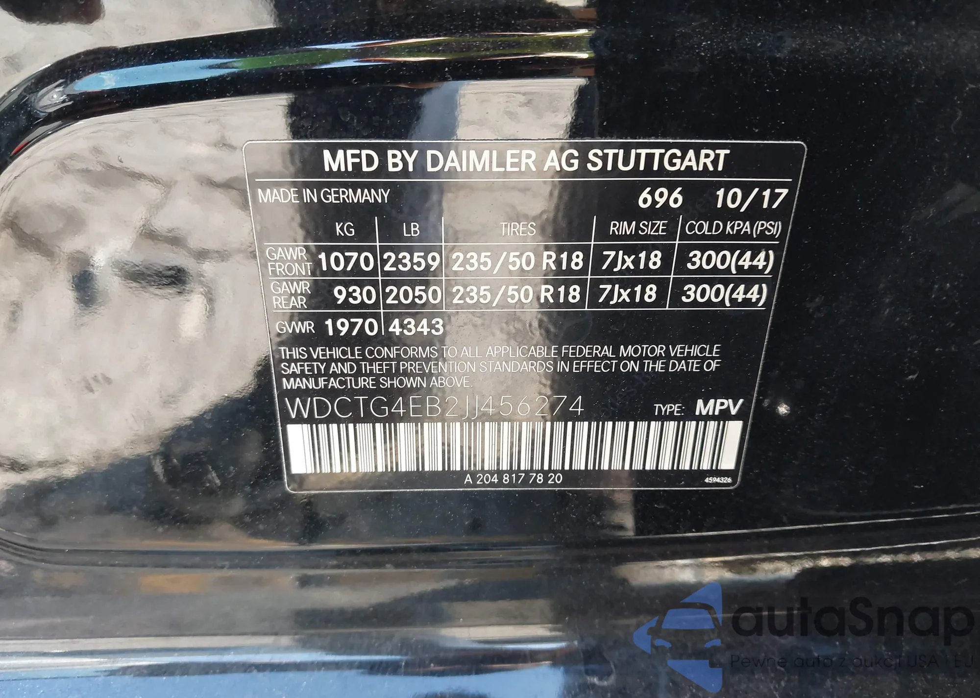 VIN: WDCTG4EB2JJ456274