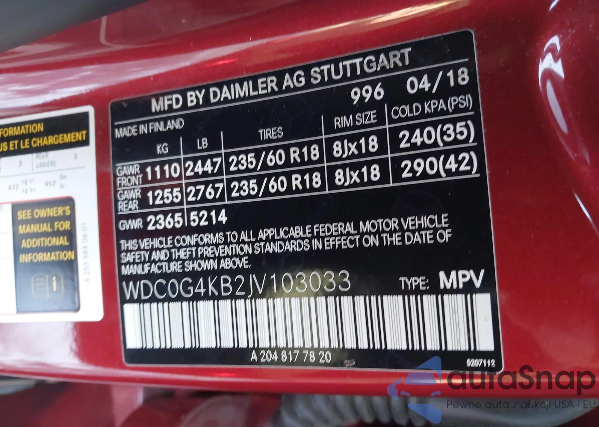 Автомобиль Mercedes-Benz GLC 2018 (VIN WDC0G4KB2JV103033) ранее не участвовал в торгах. Документы чистые, пробег соответствует или ниже среднего по рынку. Продаётся страховой компанией — рекомендуем покупку. Доставка в порт займет около 6–8 недель.
