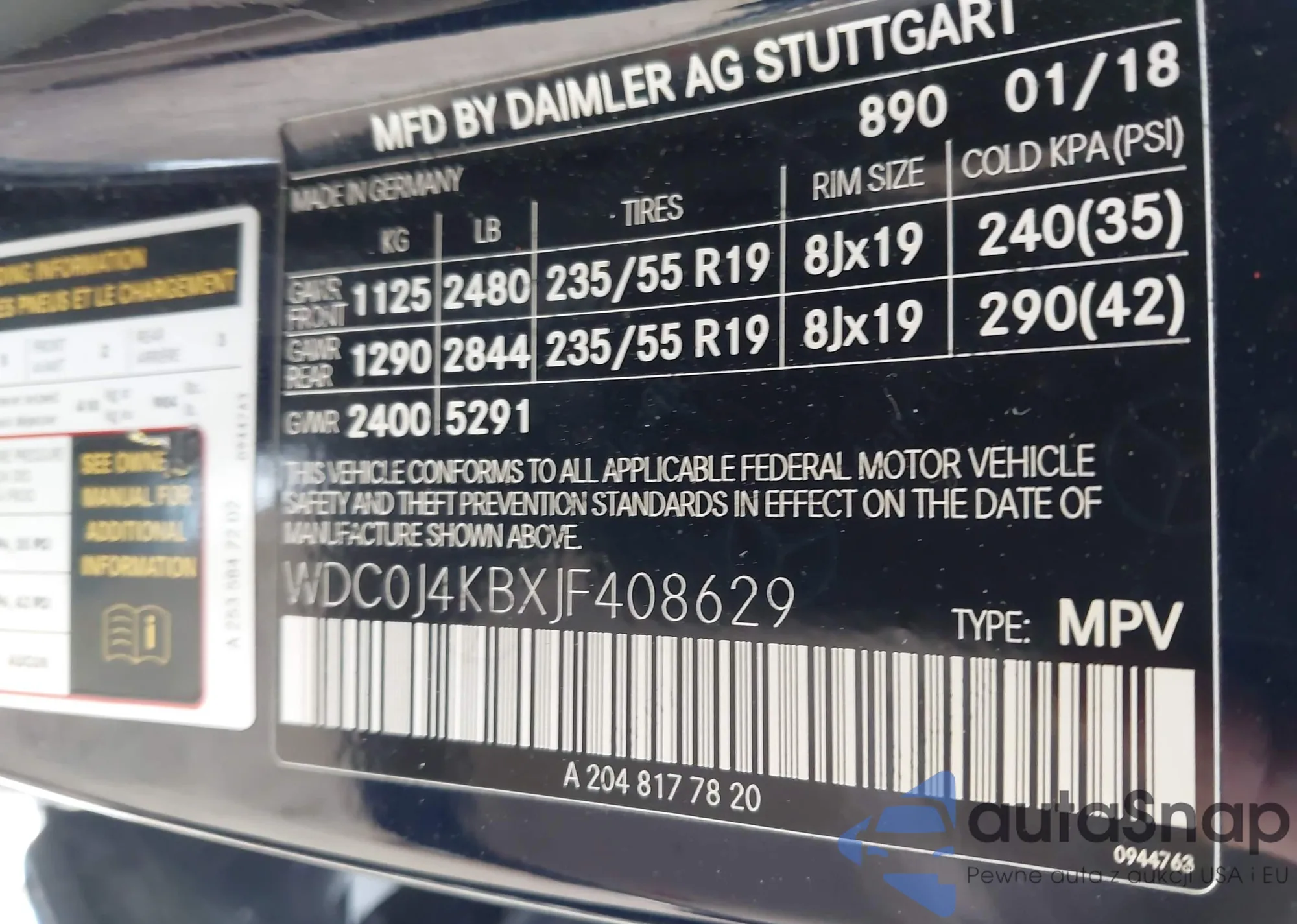 VIN: WDC0J4KBXJF408629