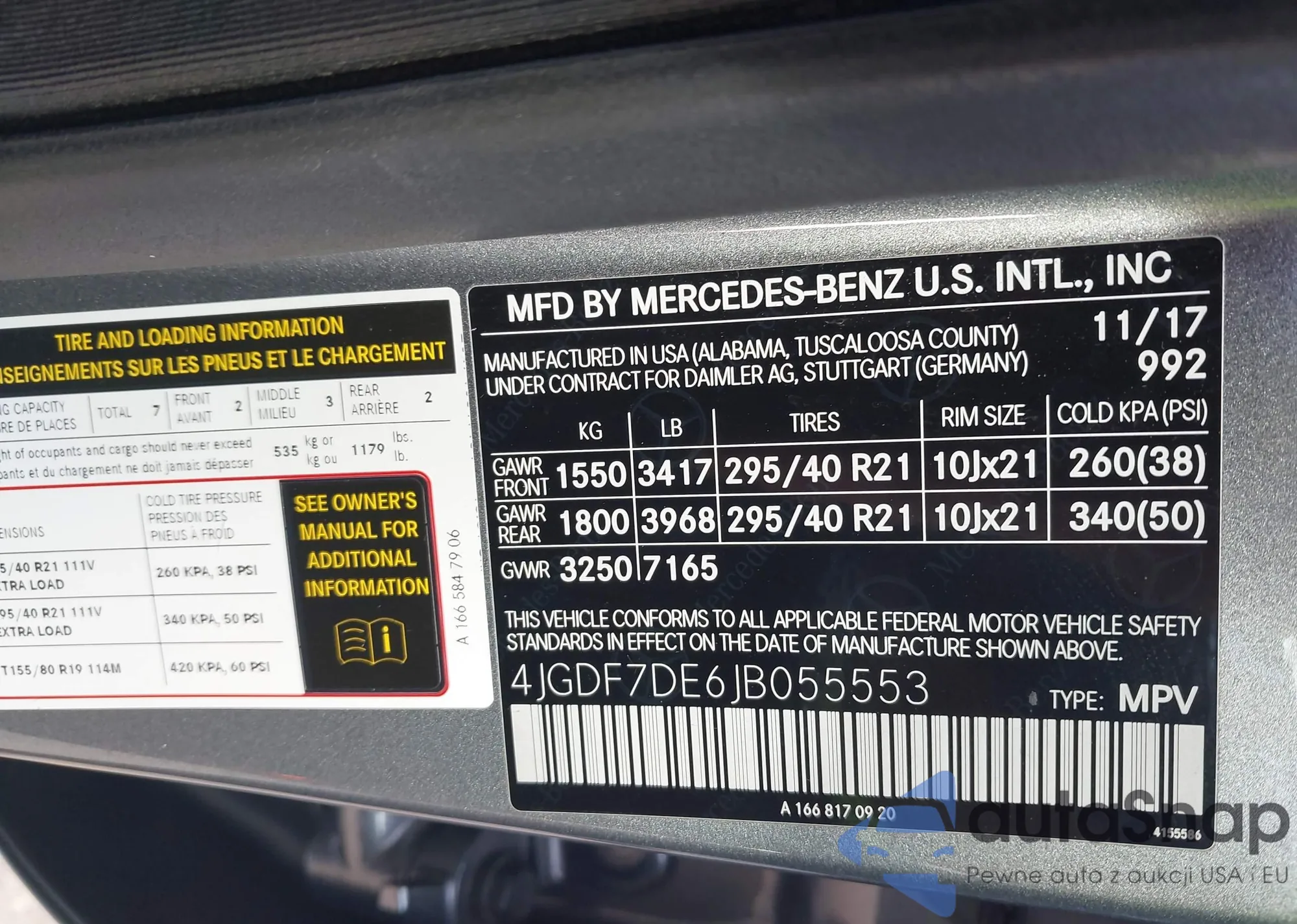 • VIN: 4JGDF7DE6JB055553