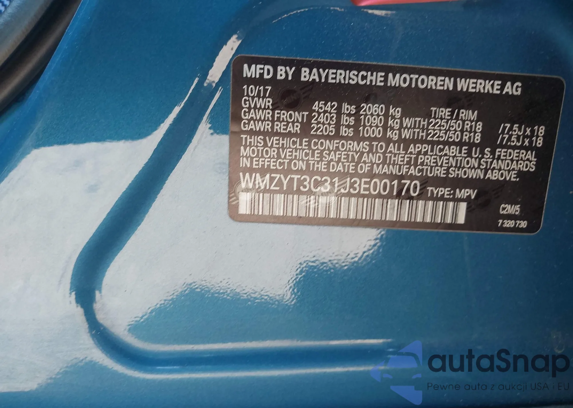 Автомобиль MINI Countryman 2018 (VIN WMZYT3C31J3E00170) ранее не участвовал в торгах. Документы чистые, пробег соответствует или ниже среднего по рынку. Продаётся страховой компанией — рекомендуем покупку. Доставка в порт займет около 6–8 недель.