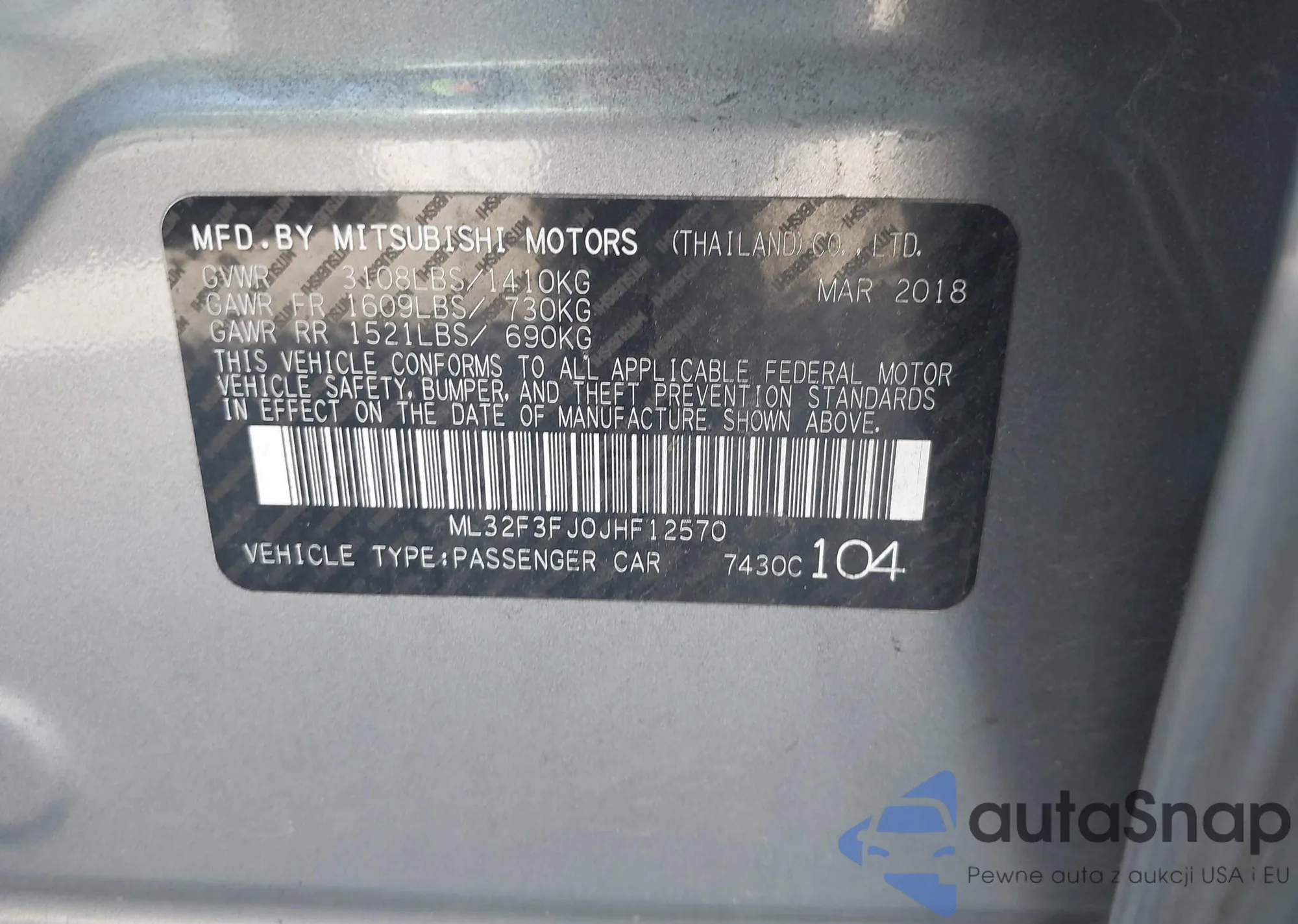 VIN: ML32F3FJ0JHF12570