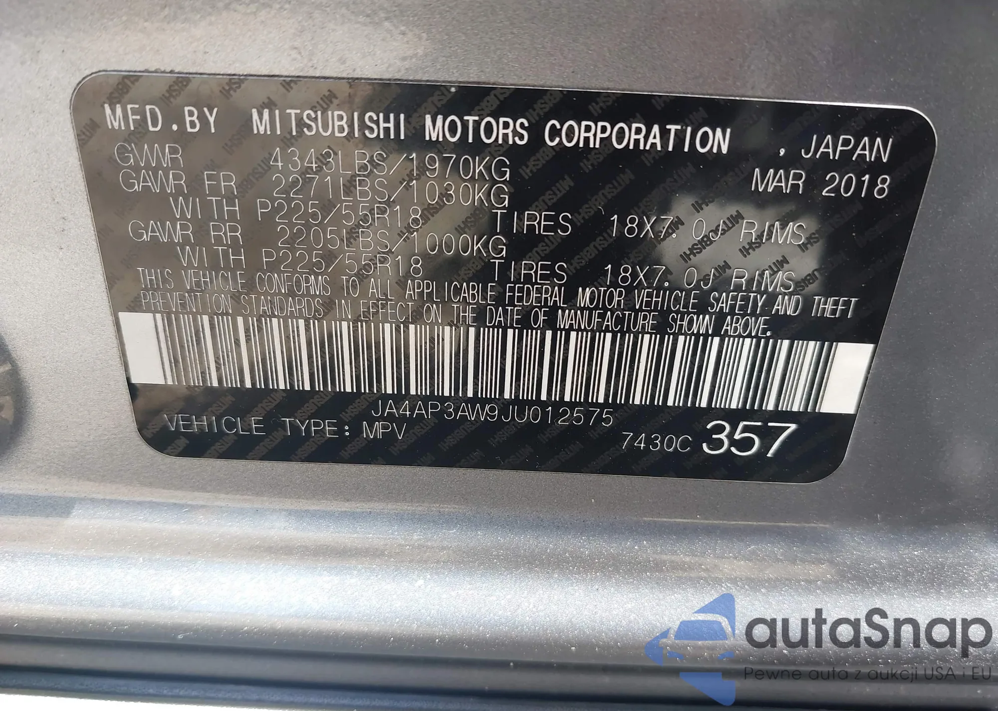 VIN: JA4AP3AW9JU012575