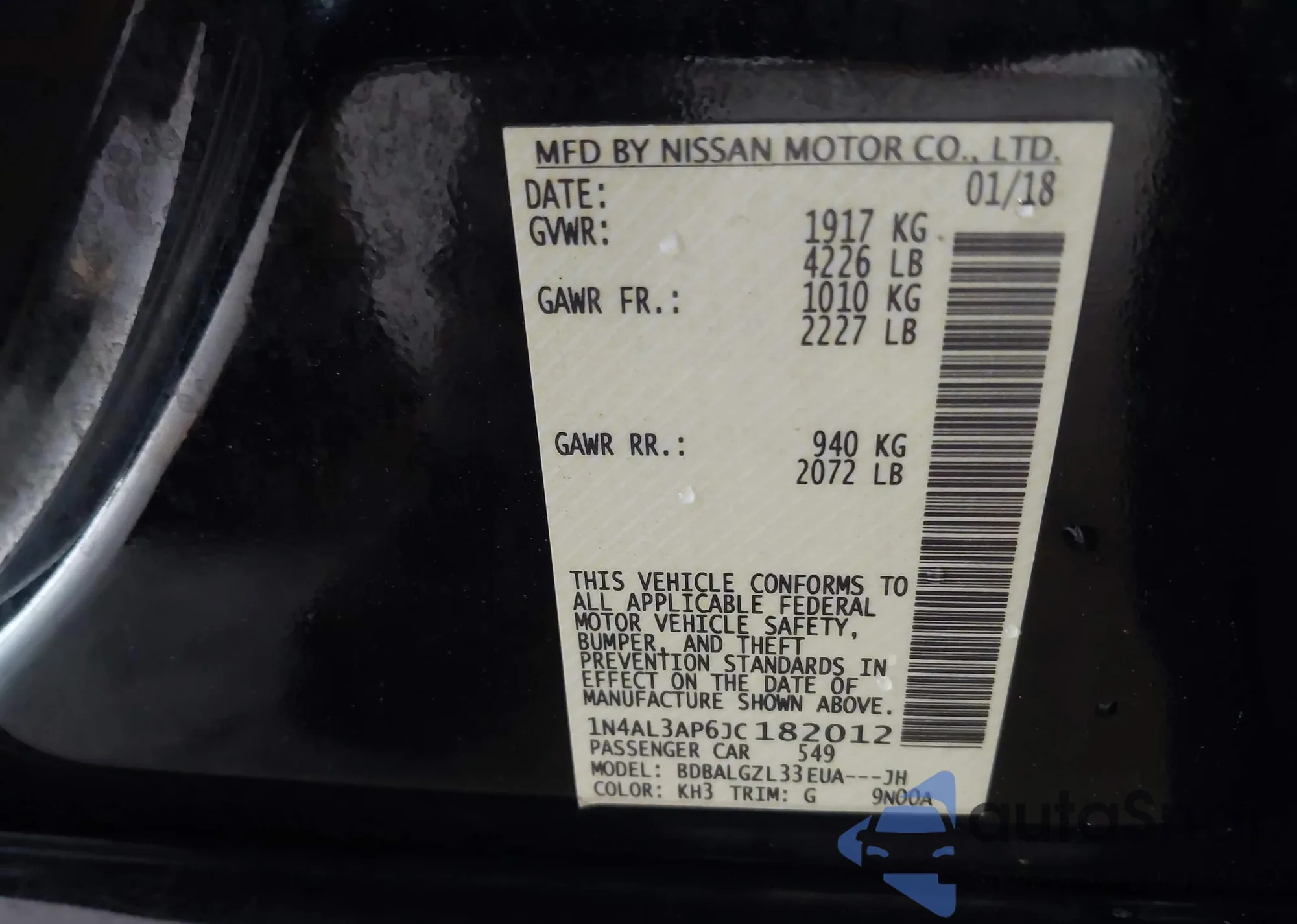 VIN: 1N4AL3AP6JC182012