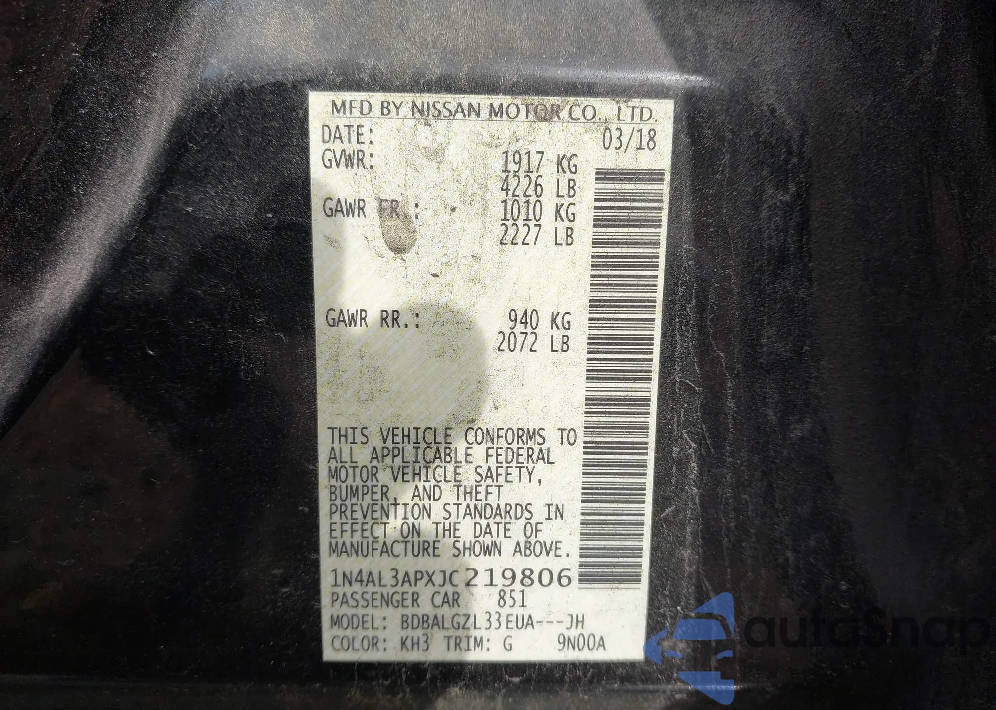 VIN: 1N4AL3APXJC219806