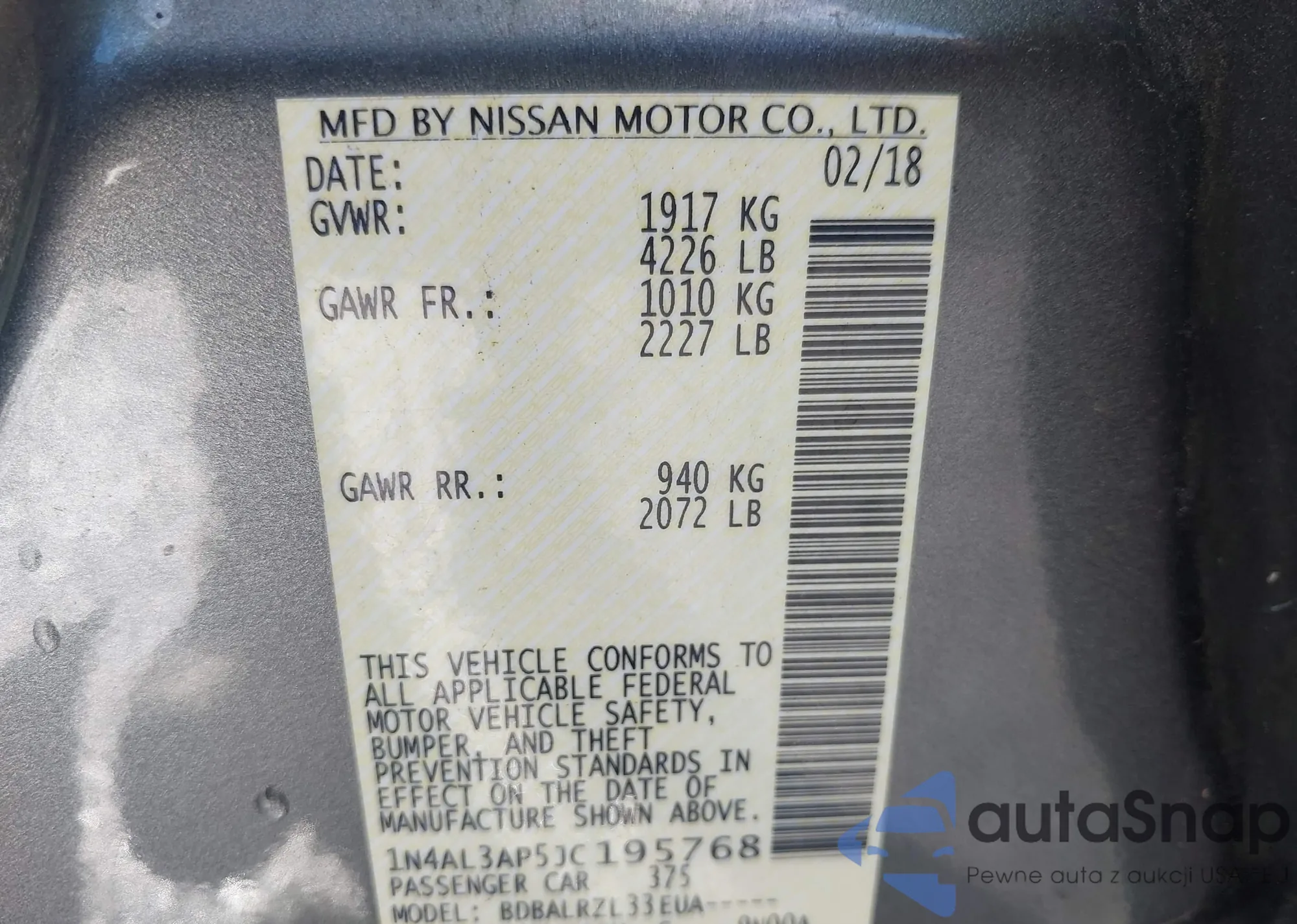 VIN: 1N4AL3AP5JC195768