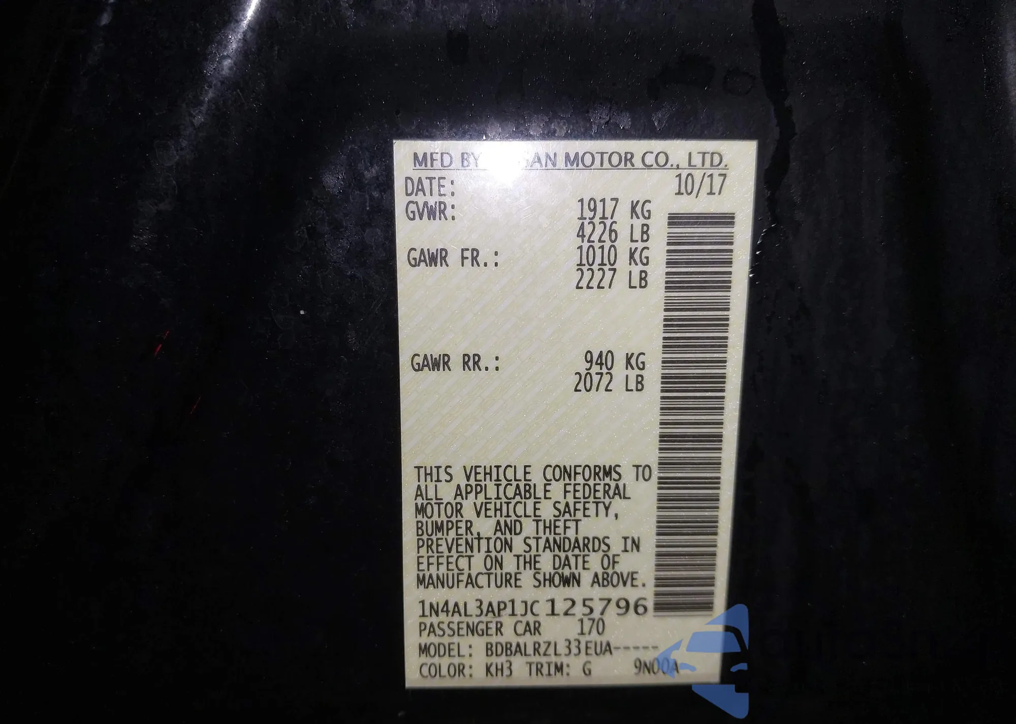 VIN: 1N4AL3AP1JC125796