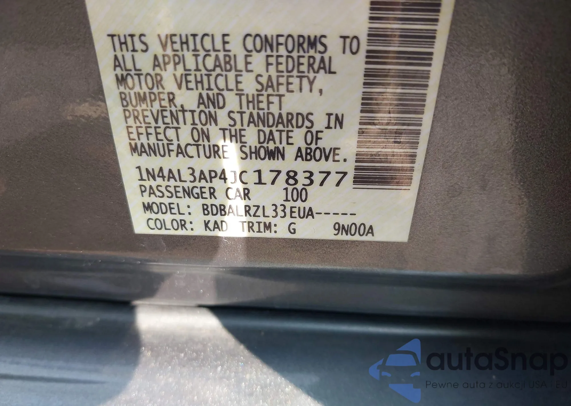 VIN: 1N4AL3AP4JC178377