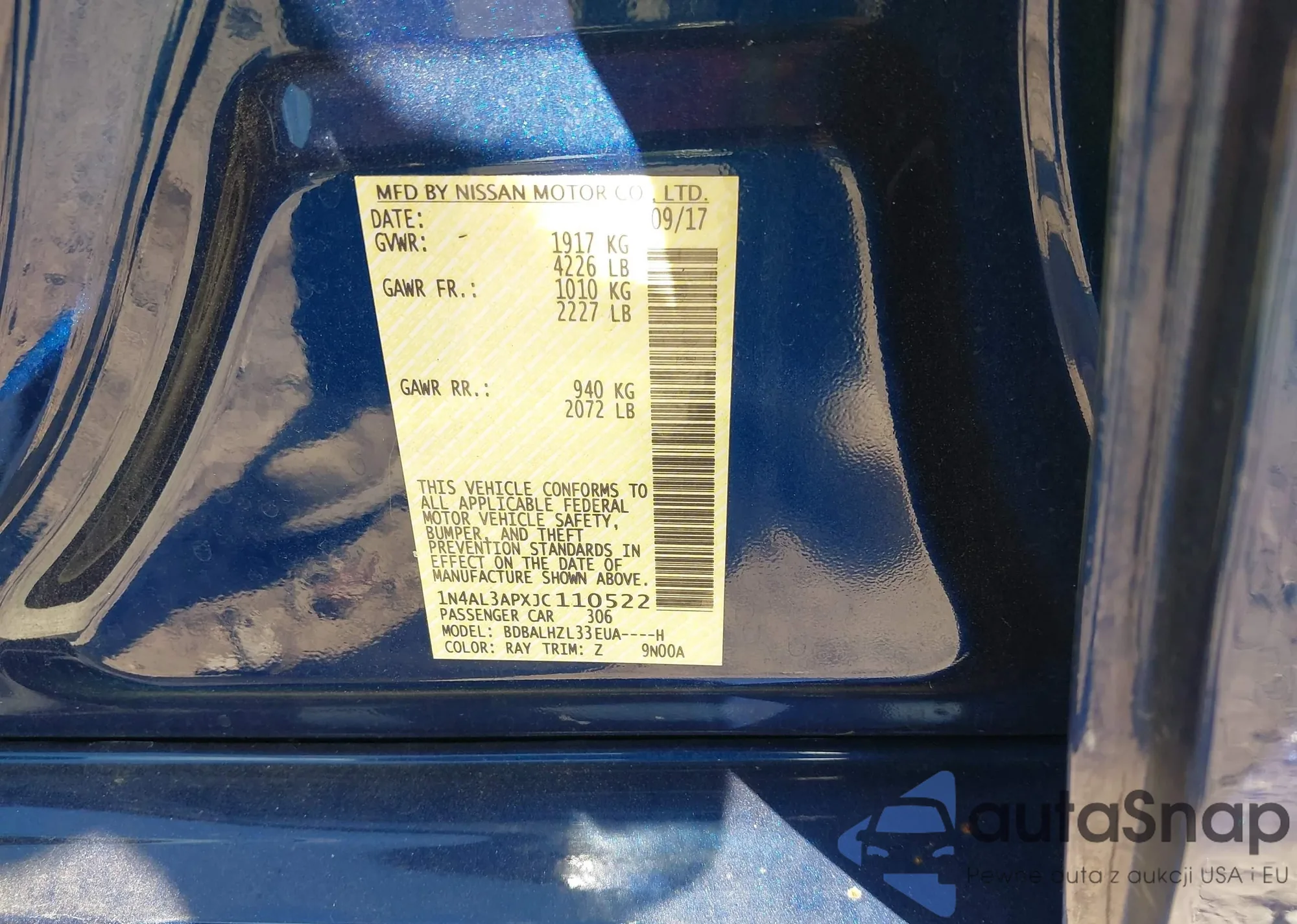 VIN: 1N4AL3APXJC110522