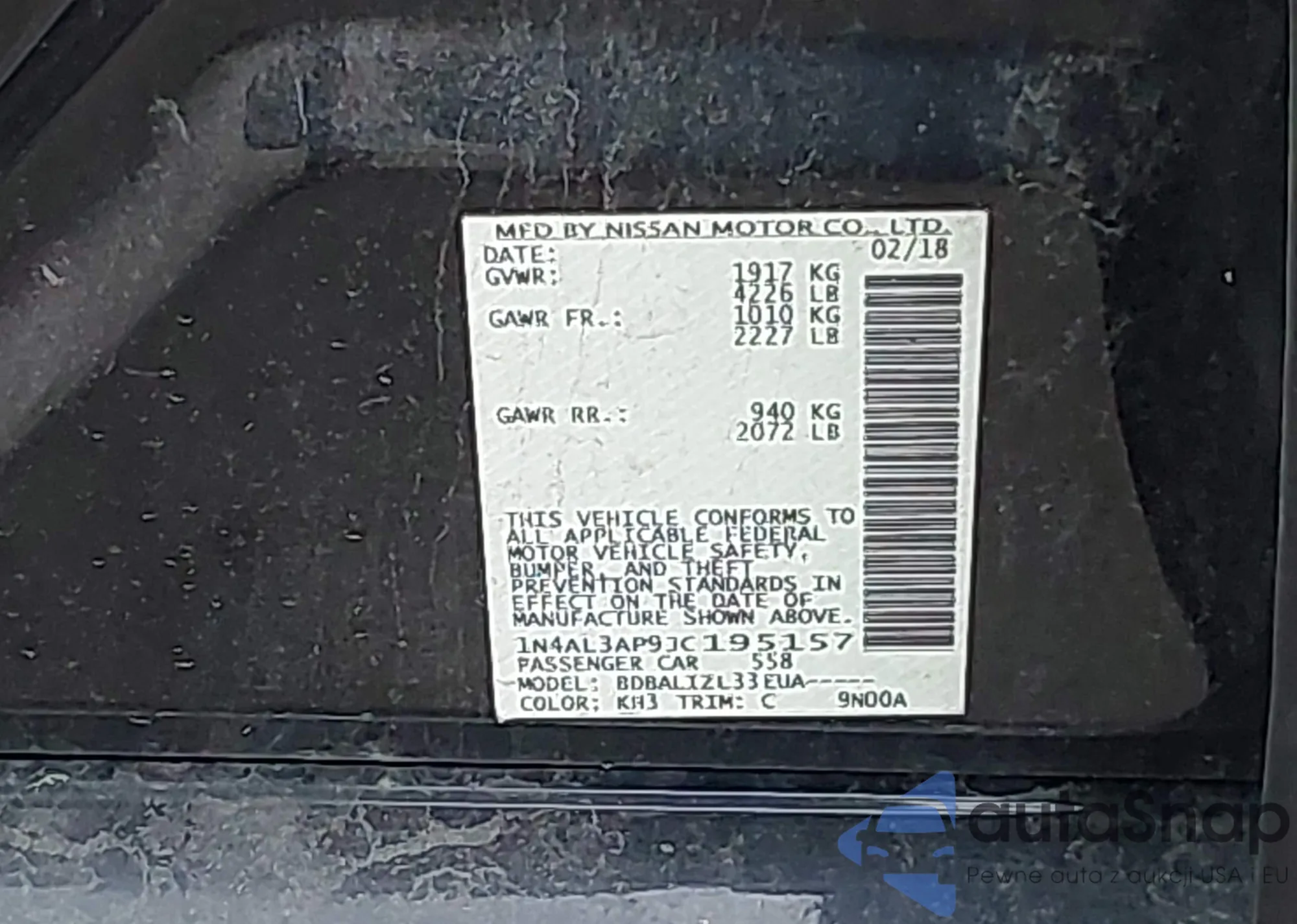 VIN: 1N4AL3AP9JC195157