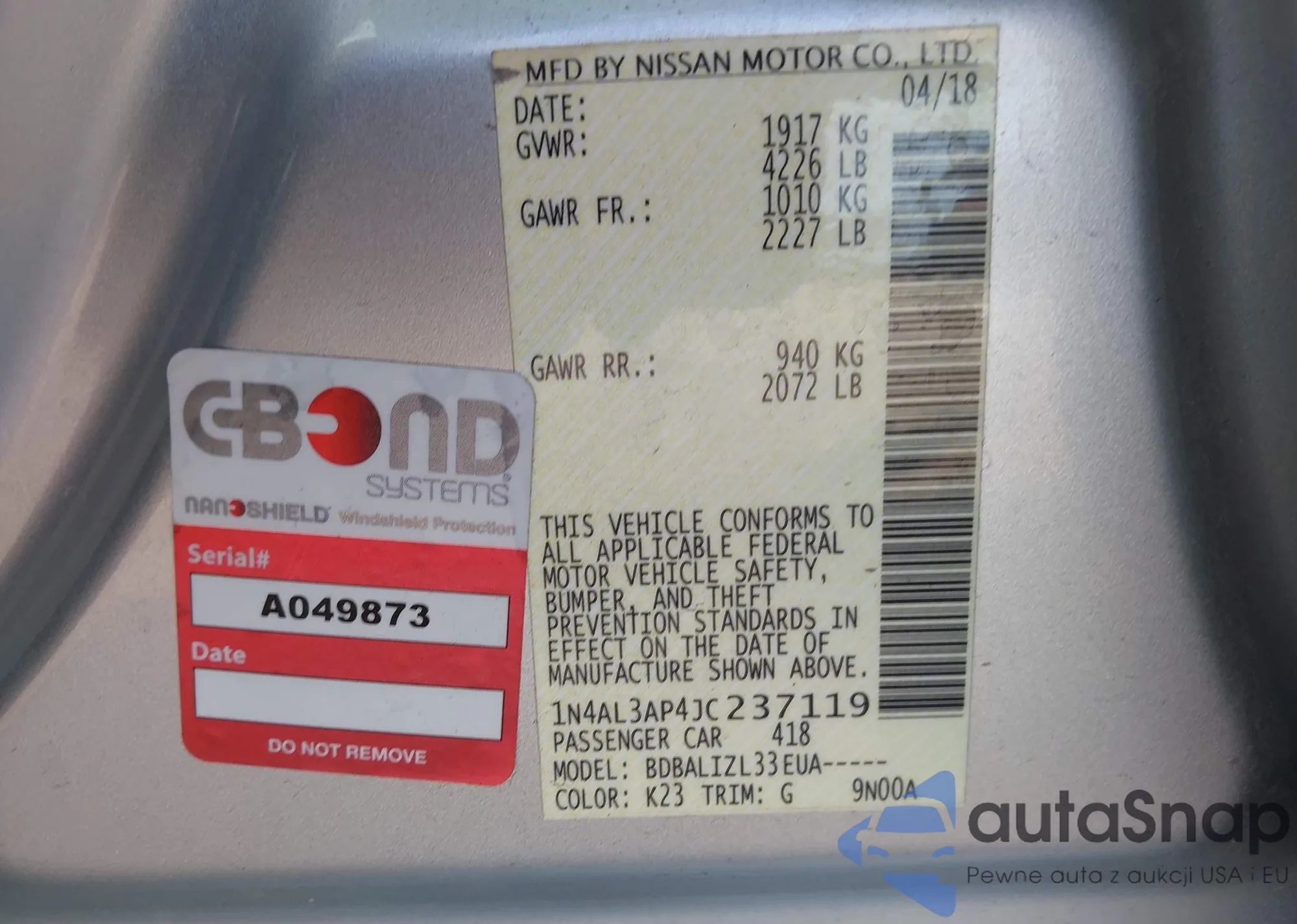 VIN: 1N4AL3AP4JC237119