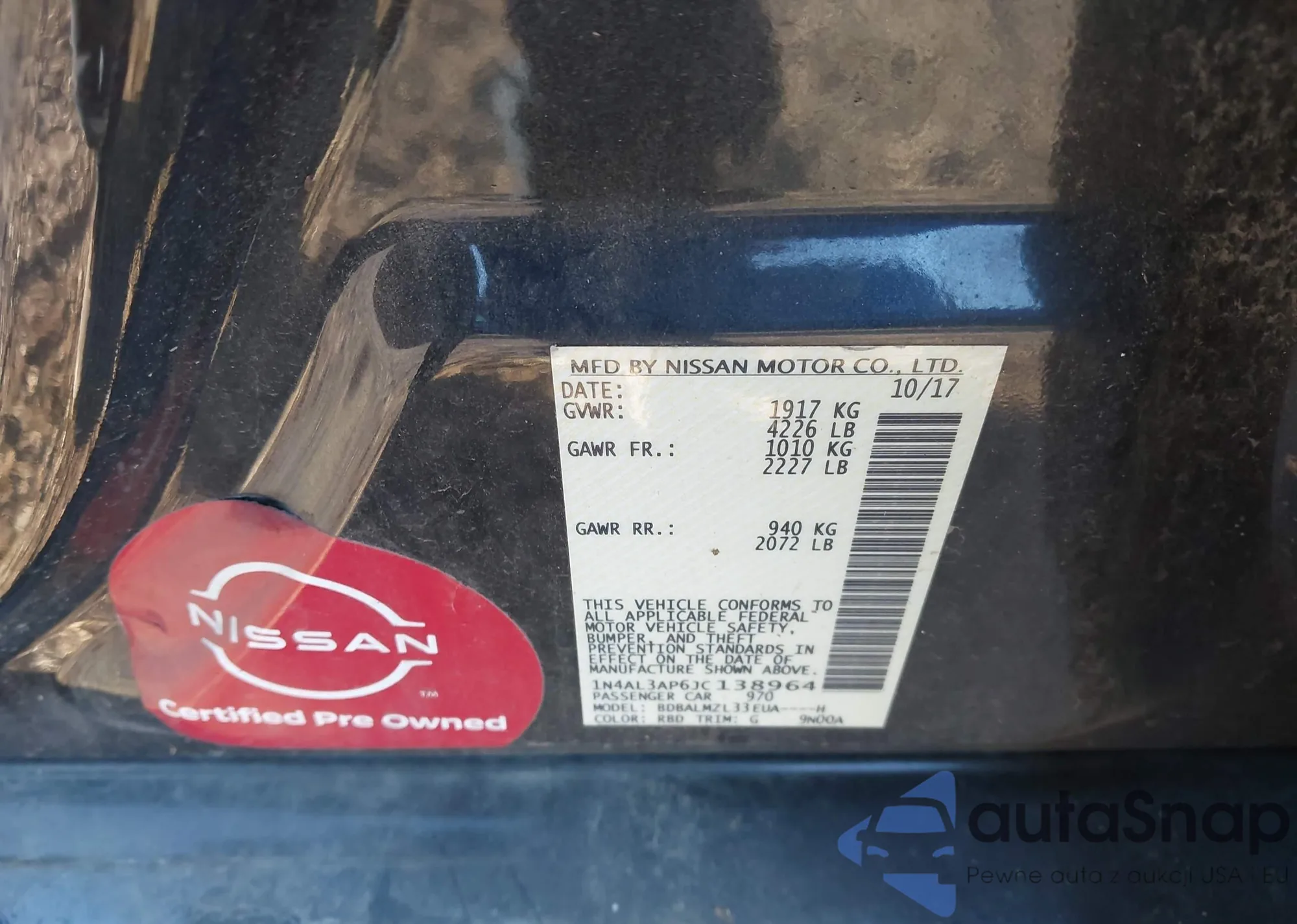 VIN: 1N4AL3AP6JC138964