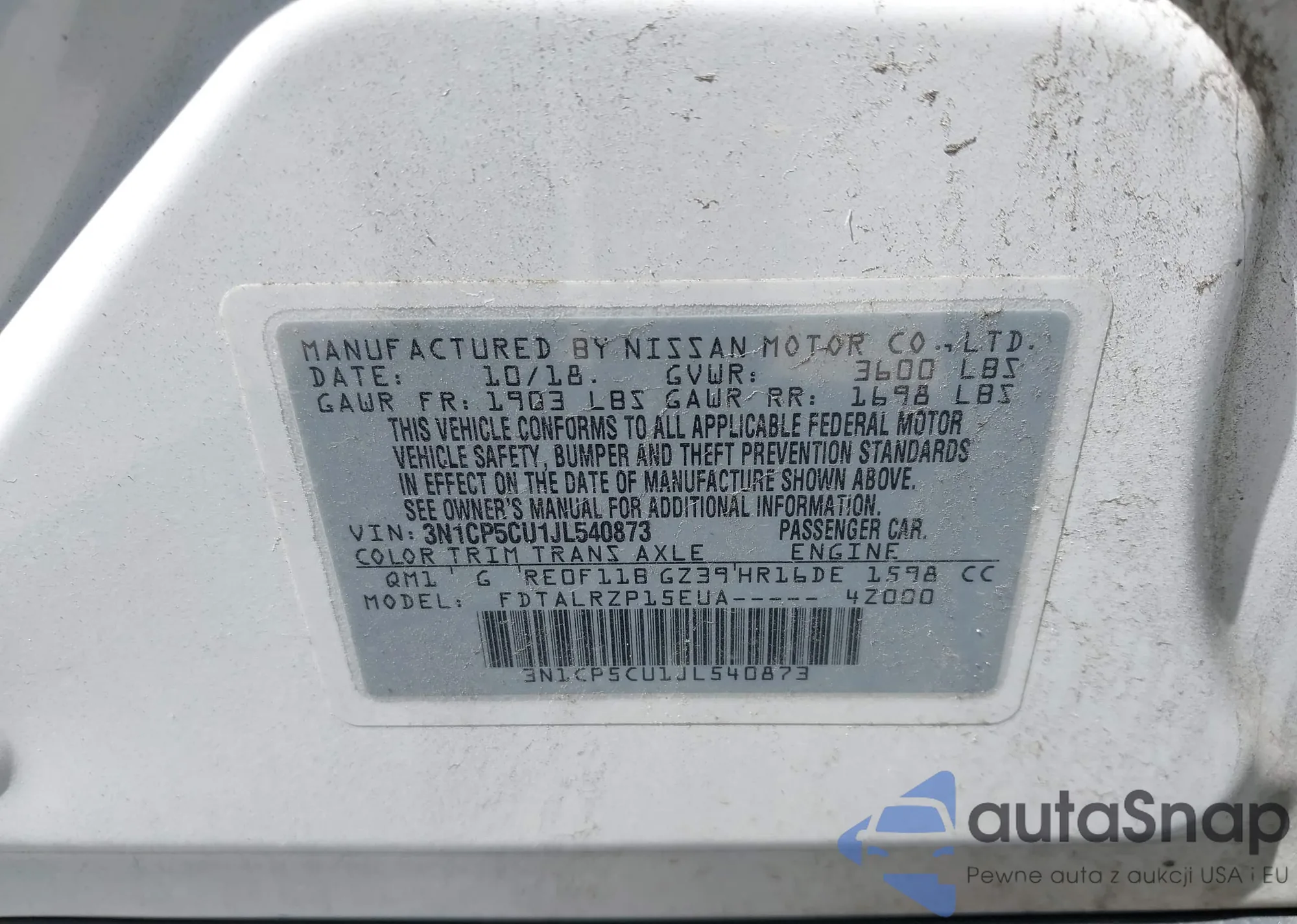 VIN: 3N1CP5CU1JL540873