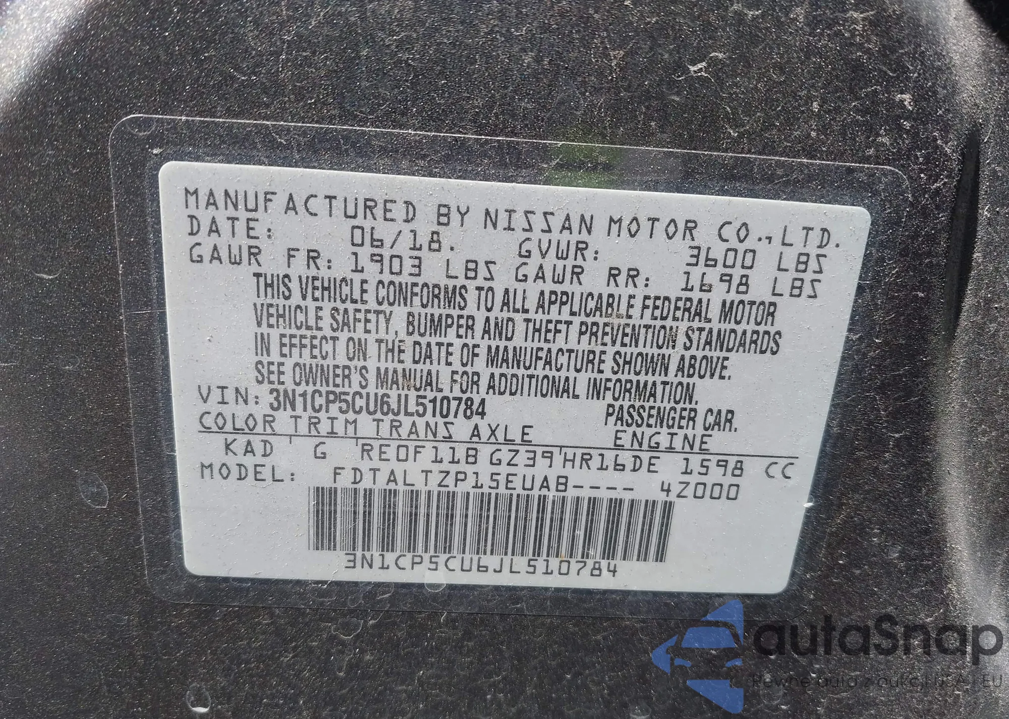 VIN: 3N1CP5CU6JL510784