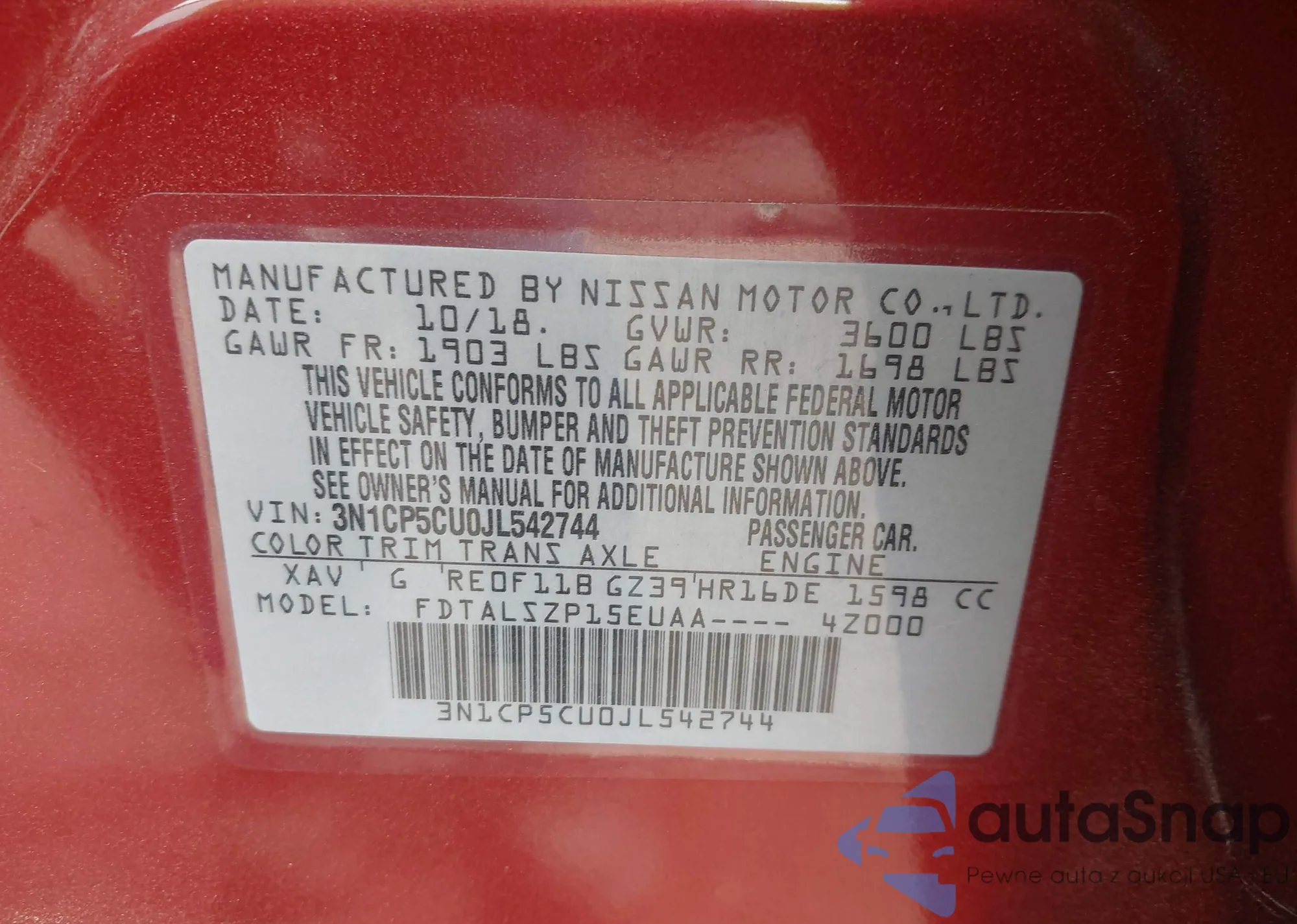 • VIN: 3N1CP5CU0JL542744