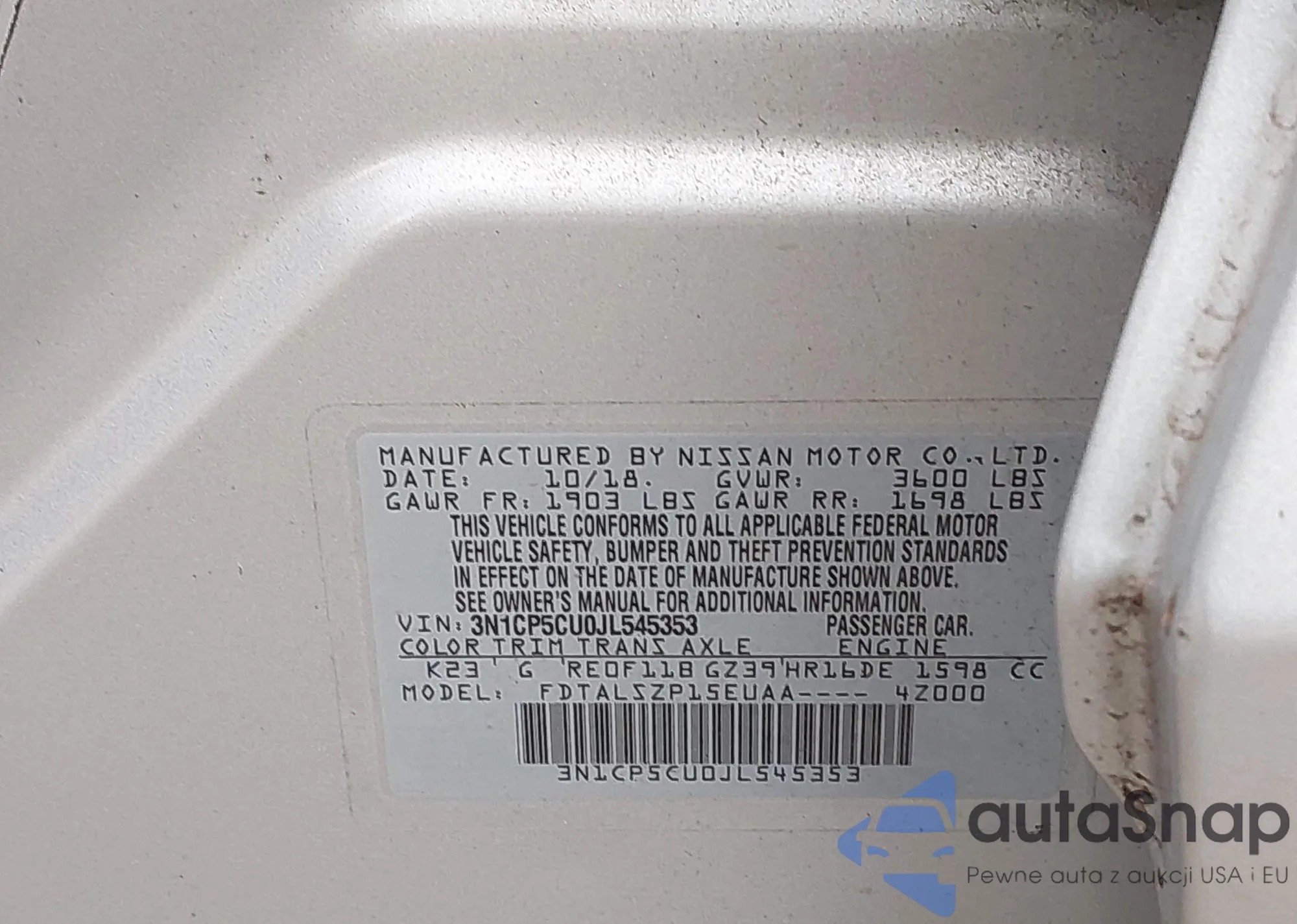 Автомобиль Nissan Kicks 2018 (VIN 3N1CP5CU0JL545353) ранее не участвовал в торгах. Документы чистые, пробег соответствует или ниже среднего по рынку. Продаётся страховой компанией — рекомендуем покупку. Доставка в порт займет около 6–8 недель.