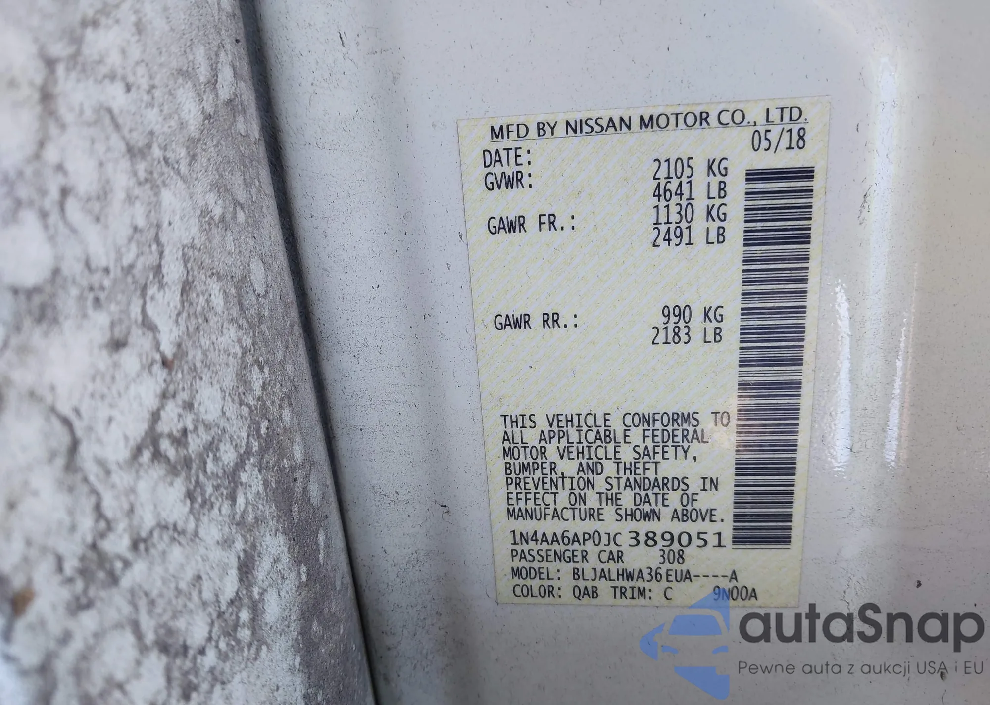 • VIN: 1N4AA6AP0JC389051
