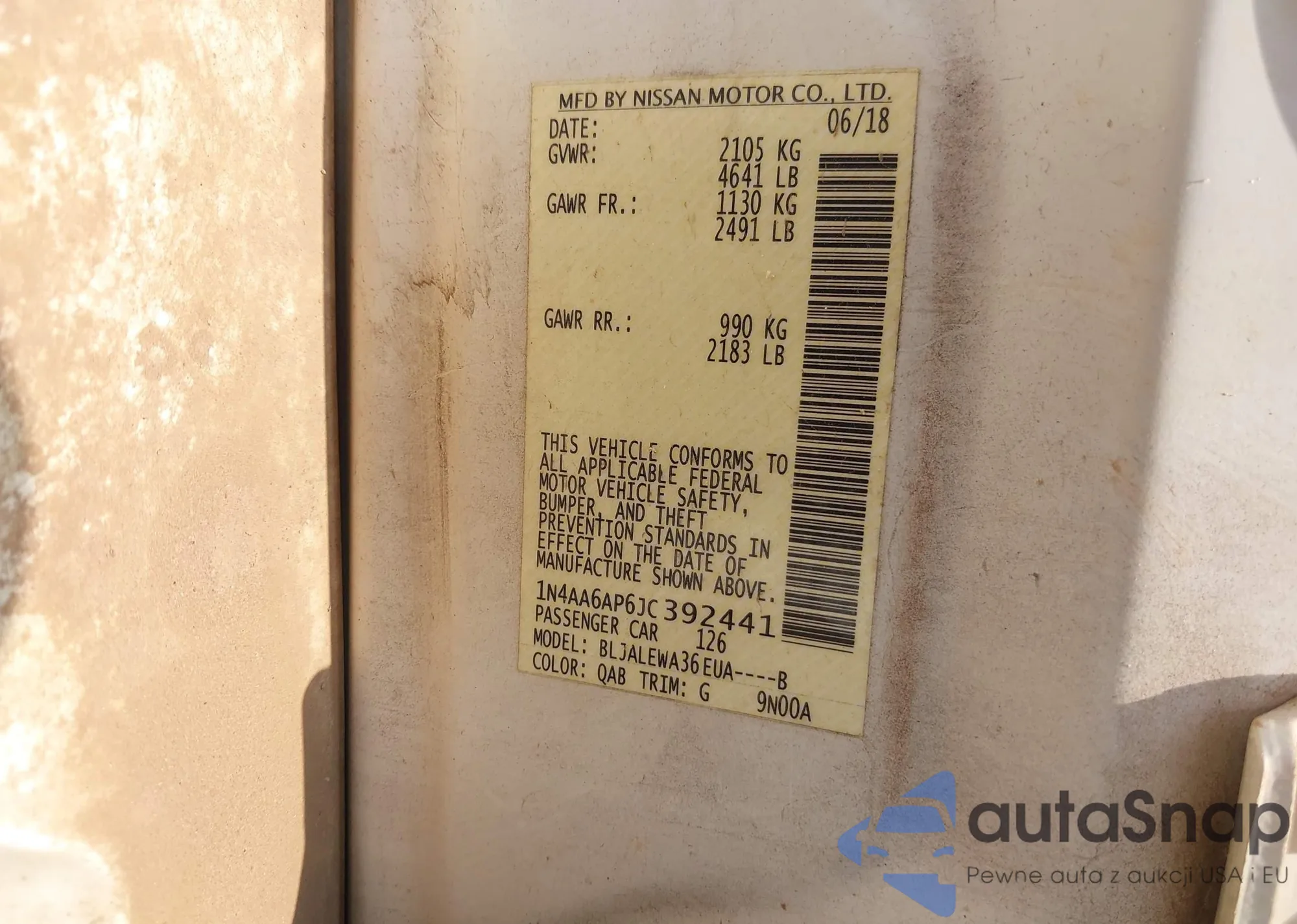 VIN: 1N4AA6AP6JC392441