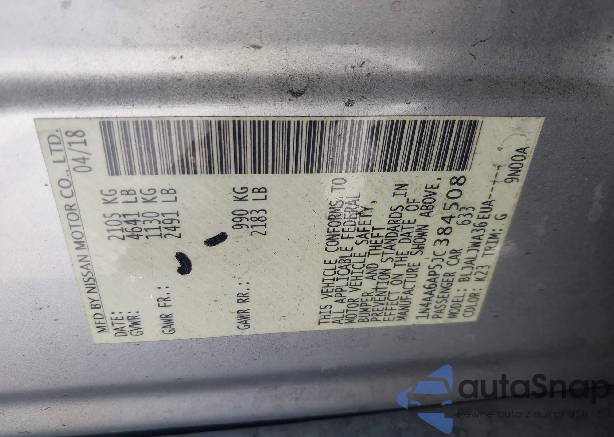 VIN: 1N4AA6AP5JC384508