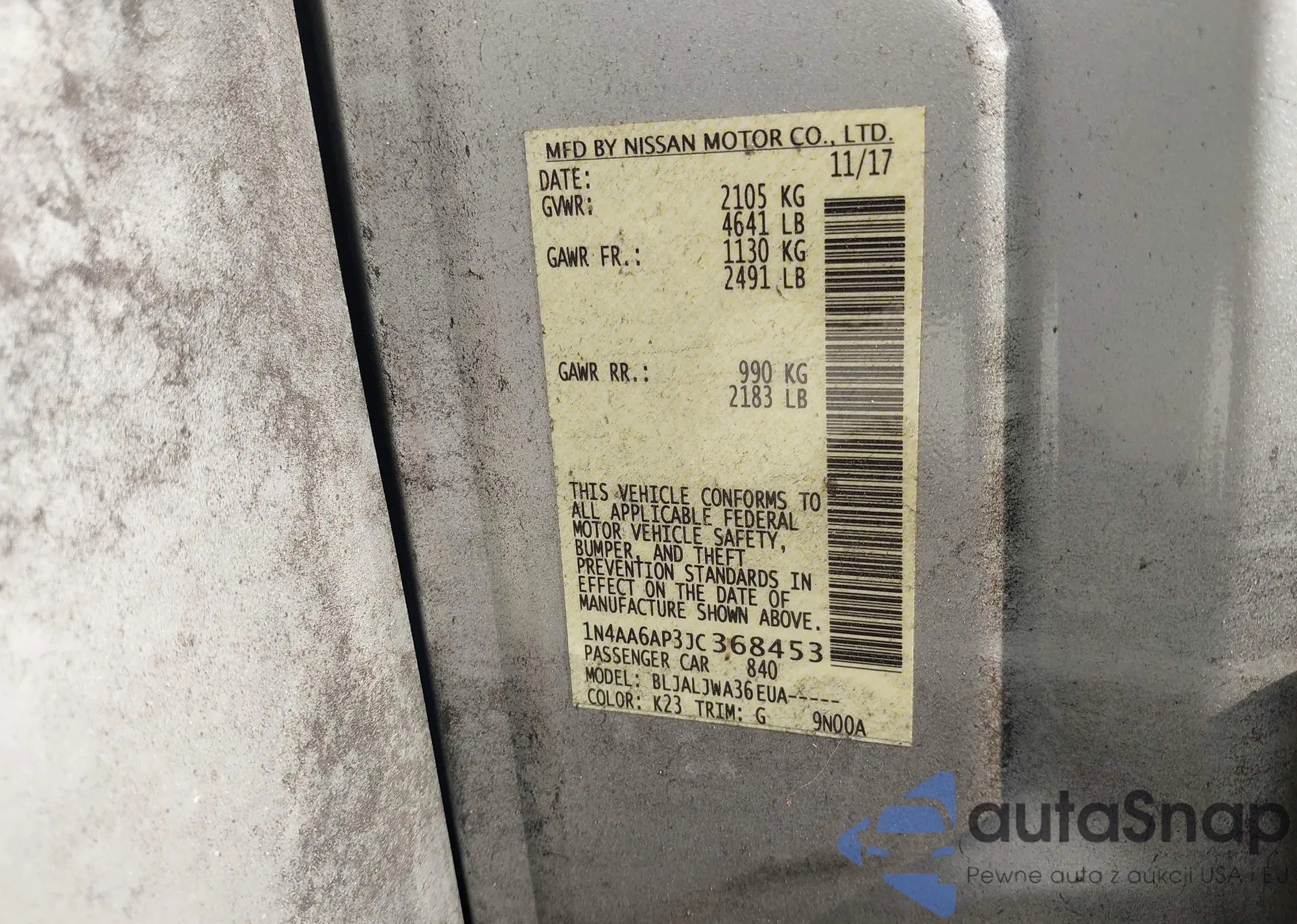 • VIN: 1N4AA6AP3JC368453