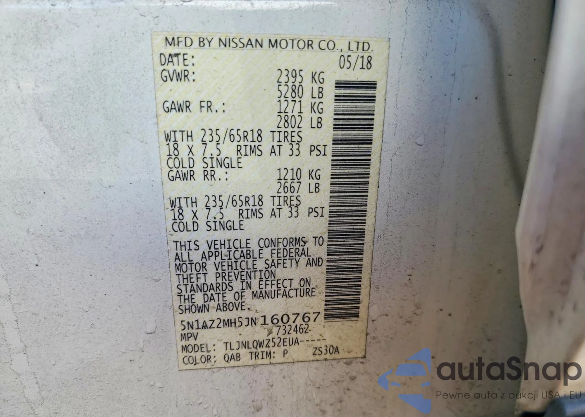 VIN: 5N1AZ2MH5JN160767