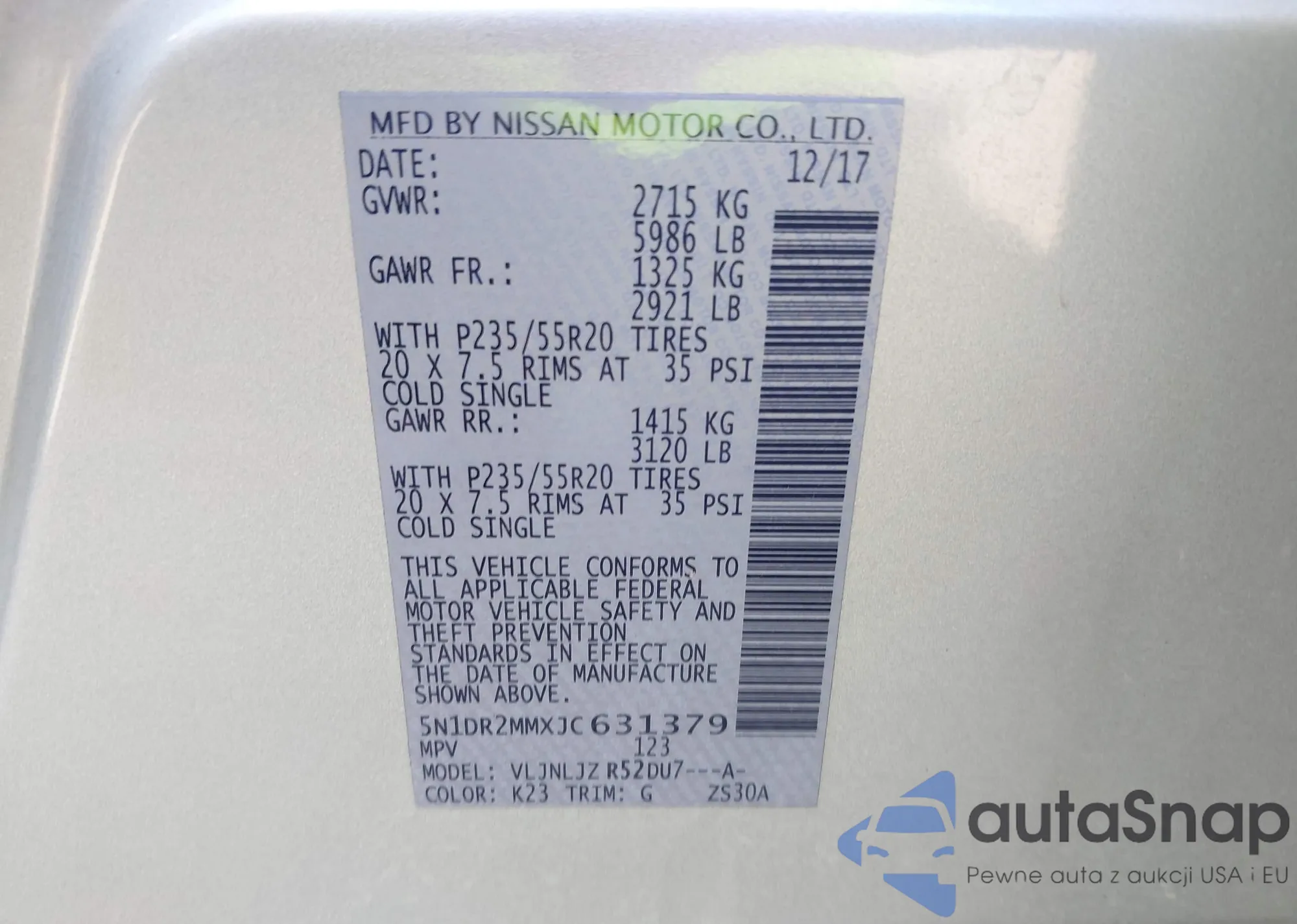 VIN: 5N1DR2MMXJC631379