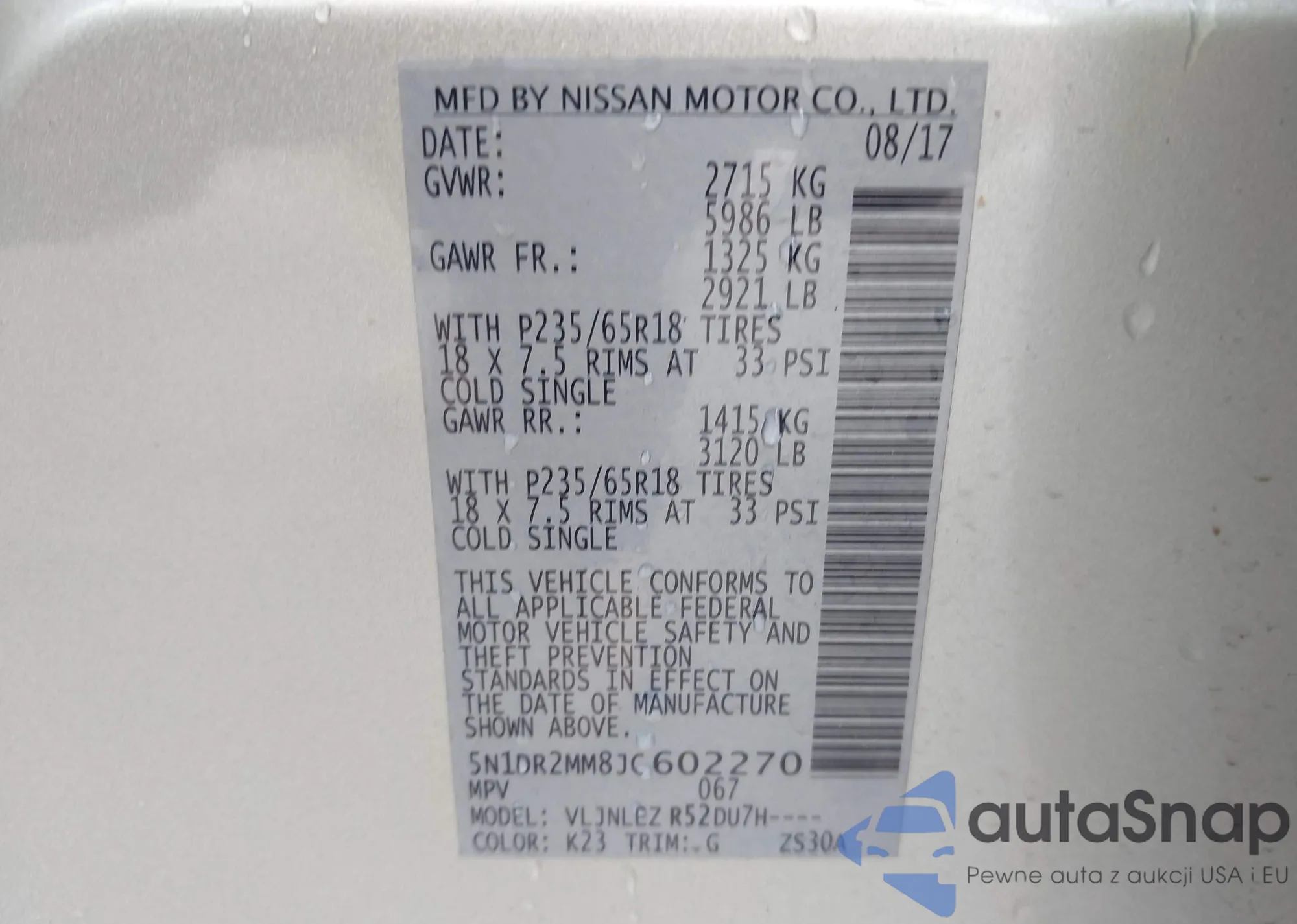 VIN: 5N1DR2MM8JC602270