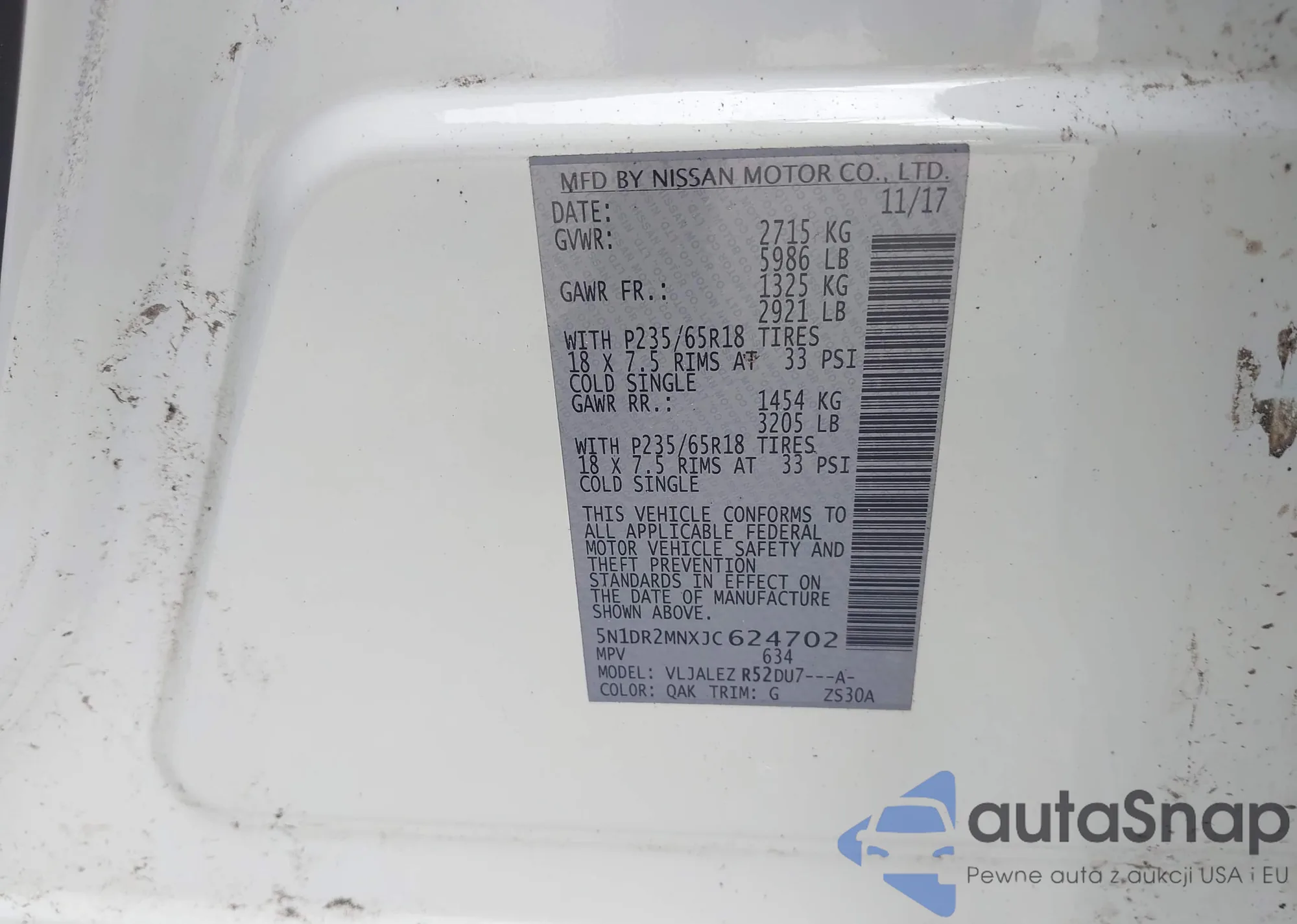 VIN: 5N1DR2MNXJC624702