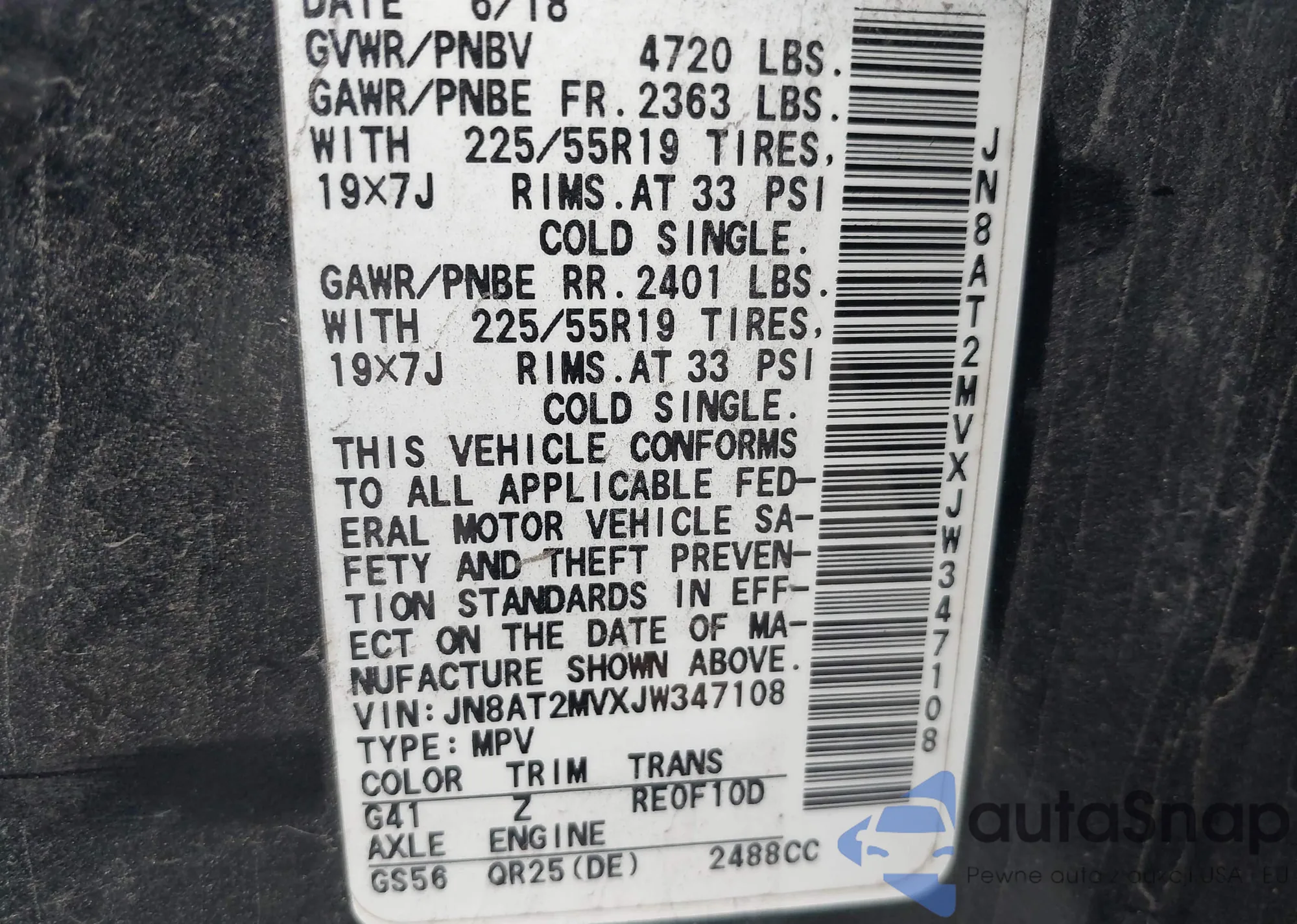 VIN: JN8AT2MVXJW347108
