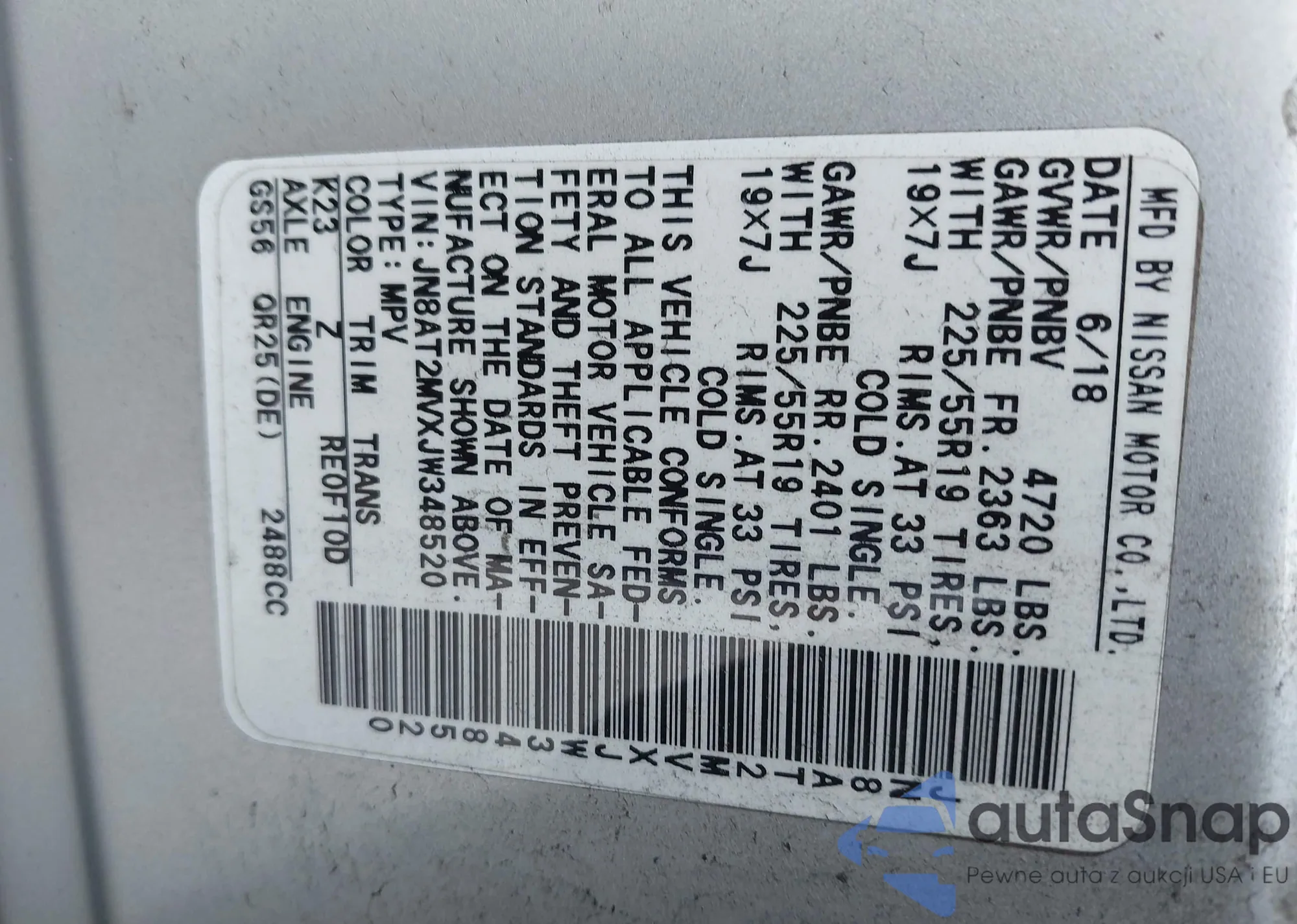 VIN: JN8AT2MVXJW348520