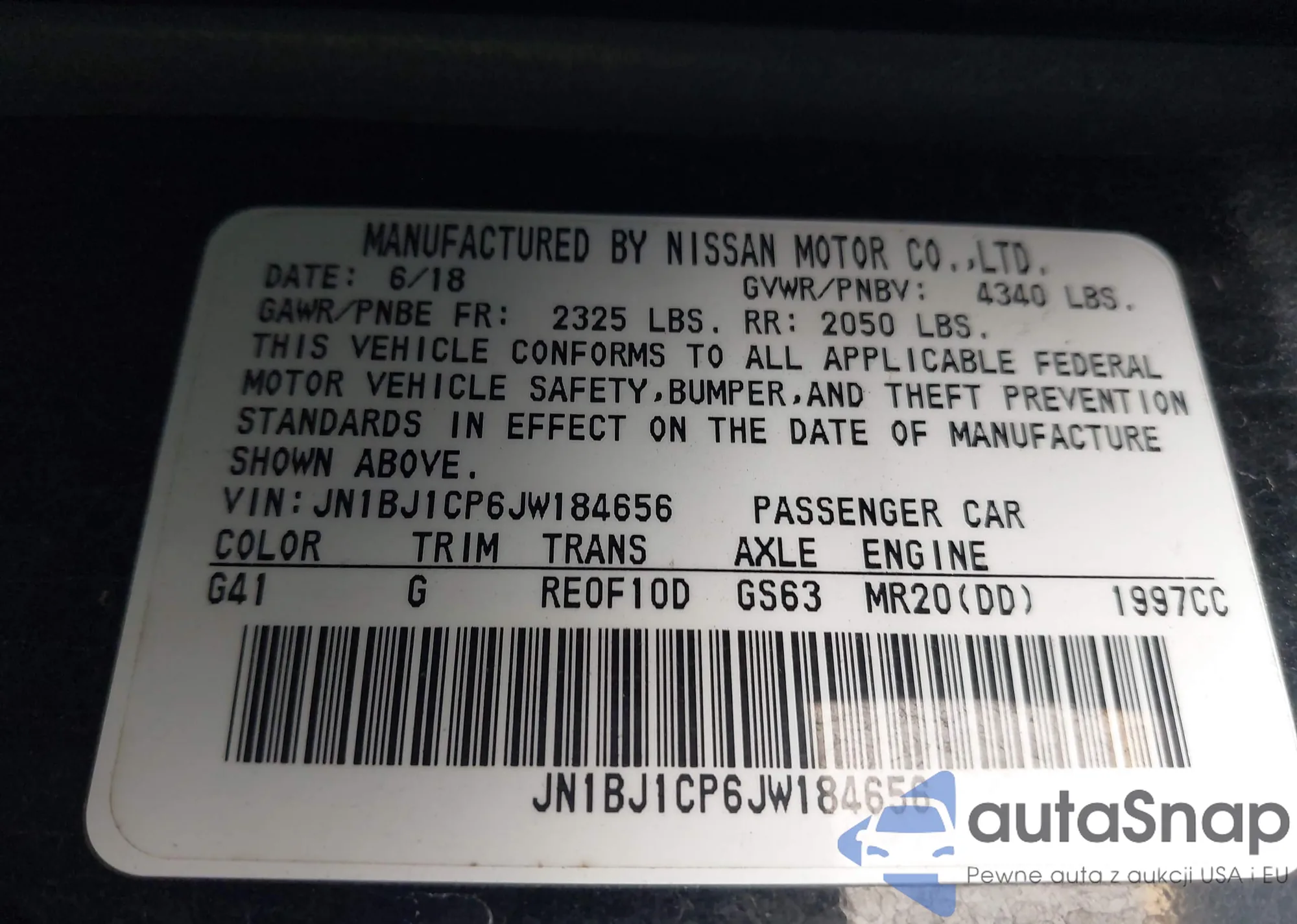 VIN: JN1BJ1CP6JW184656
