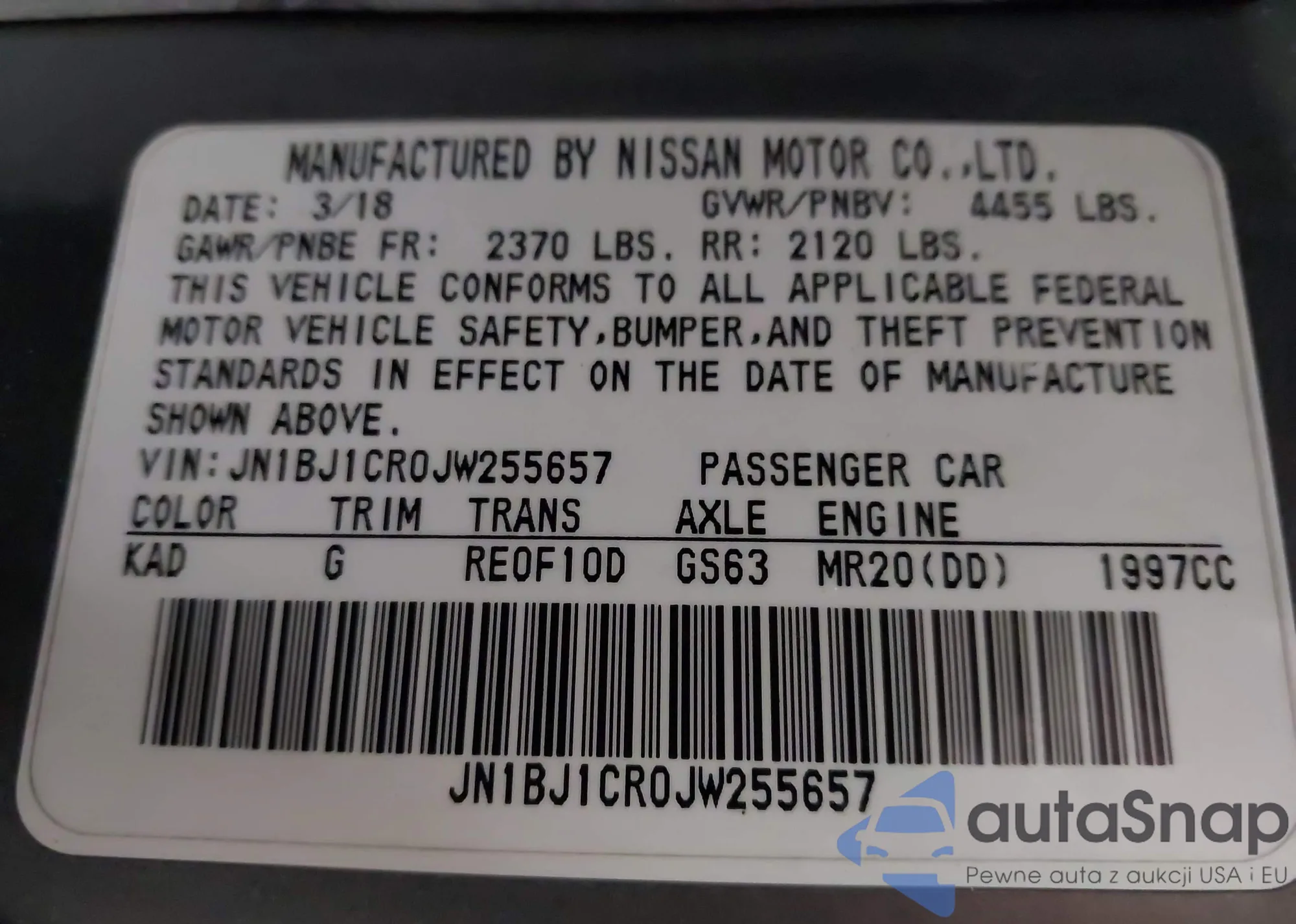 Автомобиль Nissan Rogue 2018 (VIN JN1BJ1CR0JW255657) ранее не участвовал в торгах. Документы чистые, пробег соответствует или ниже среднего по рынку. Продаётся страховой компанией — рекомендуем покупку. Доставка в порт займет около 6–8 недель.