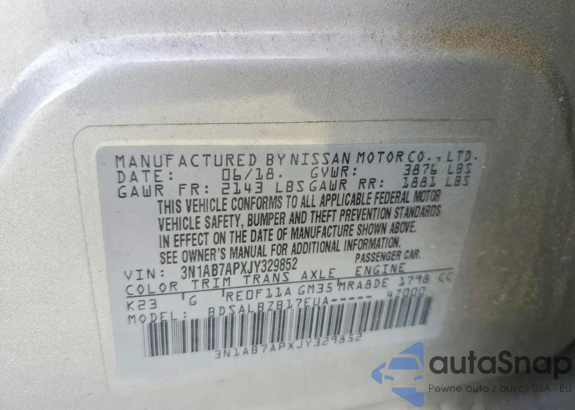 VIN: 3N1AB7APXJY329852