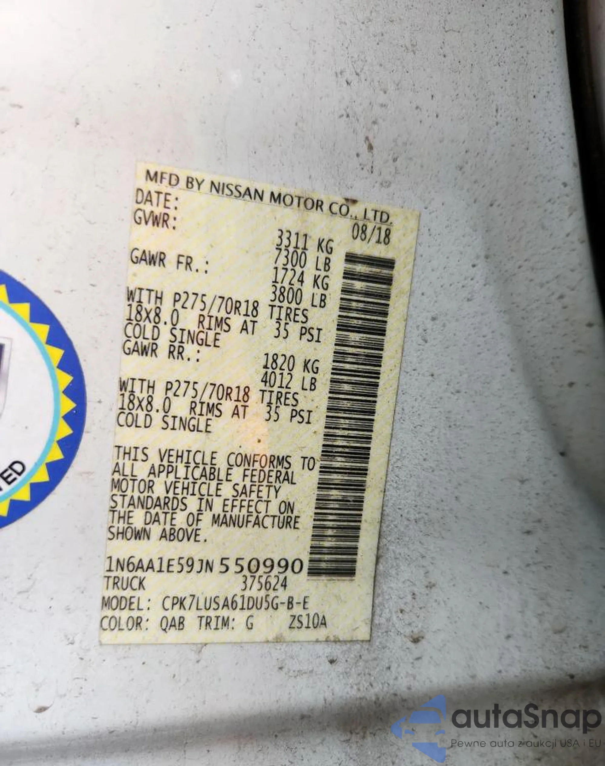 • VIN: 1N6AA1E59JN550990